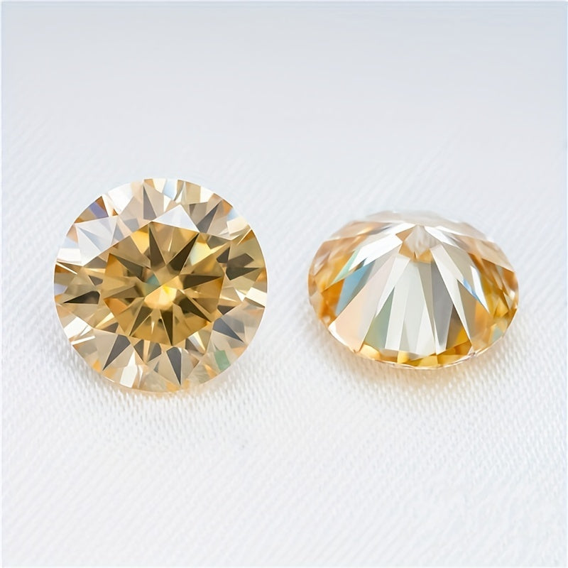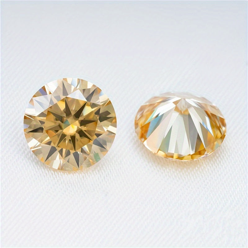 This stunning Moissanite diamond round yellow loose stone is perfect for creating dazzling jewelry. It can be easily detected by a diamond detection pen.