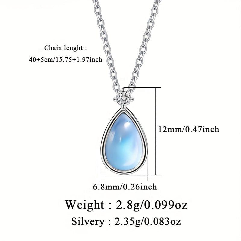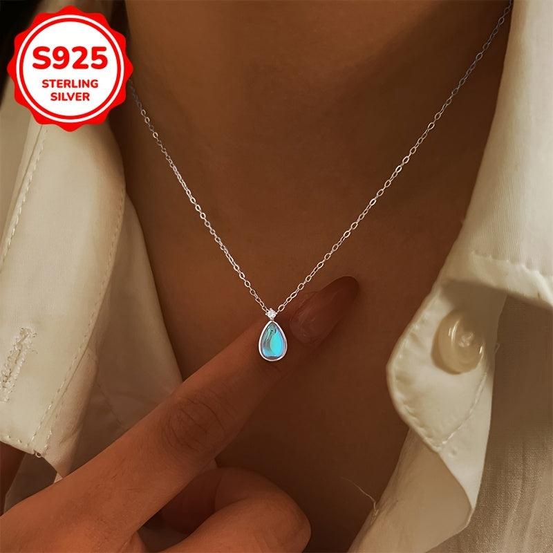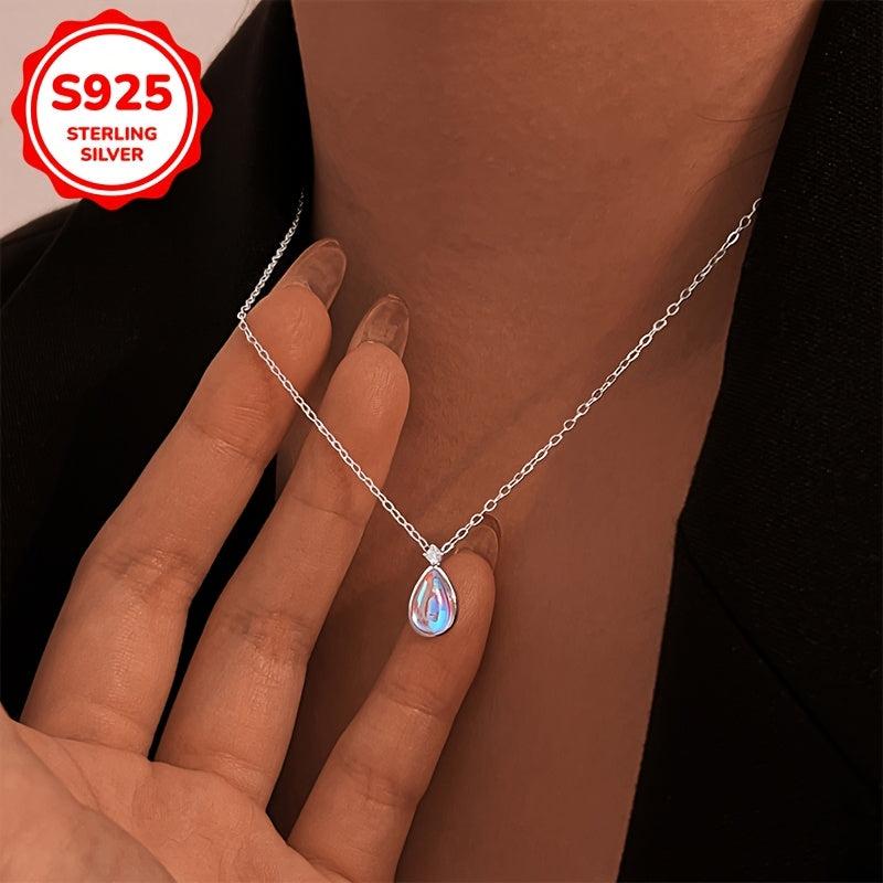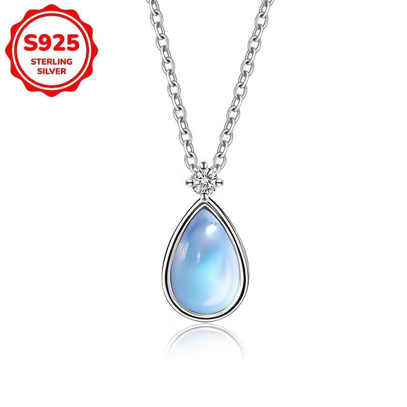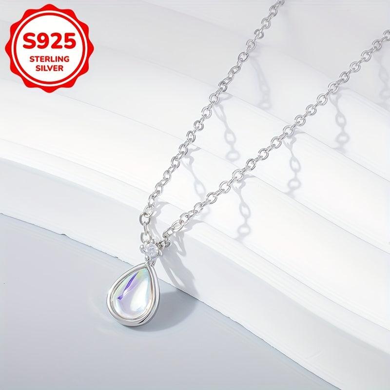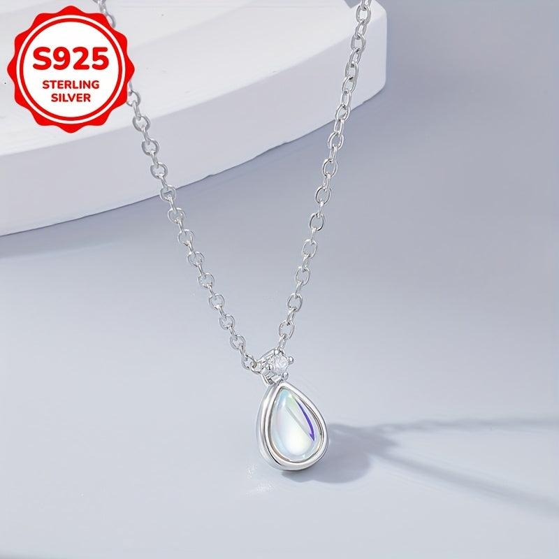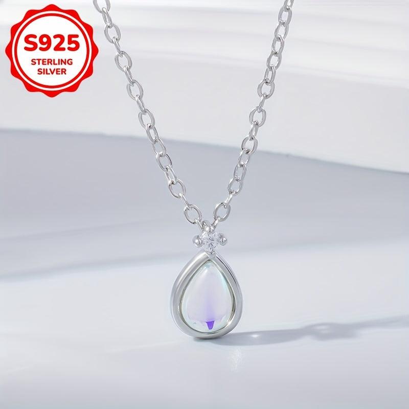 Elegant 925 sterling silver pendant necklace featuring a synthetic moonstone teardrop with sparkling accents. Perfect for daily wear or as a gift for a loved one.
