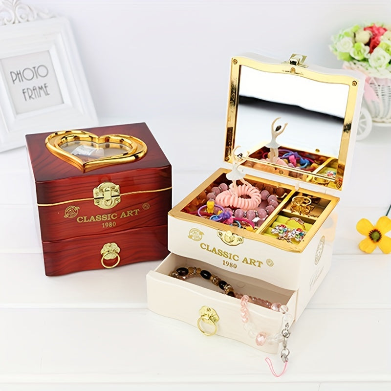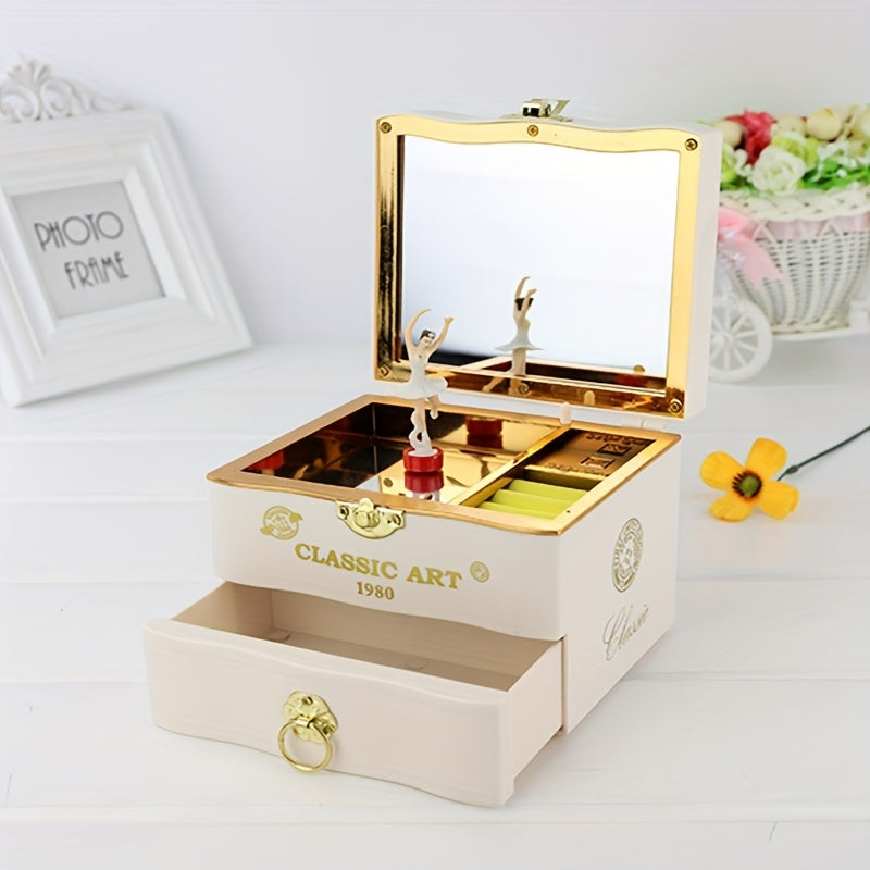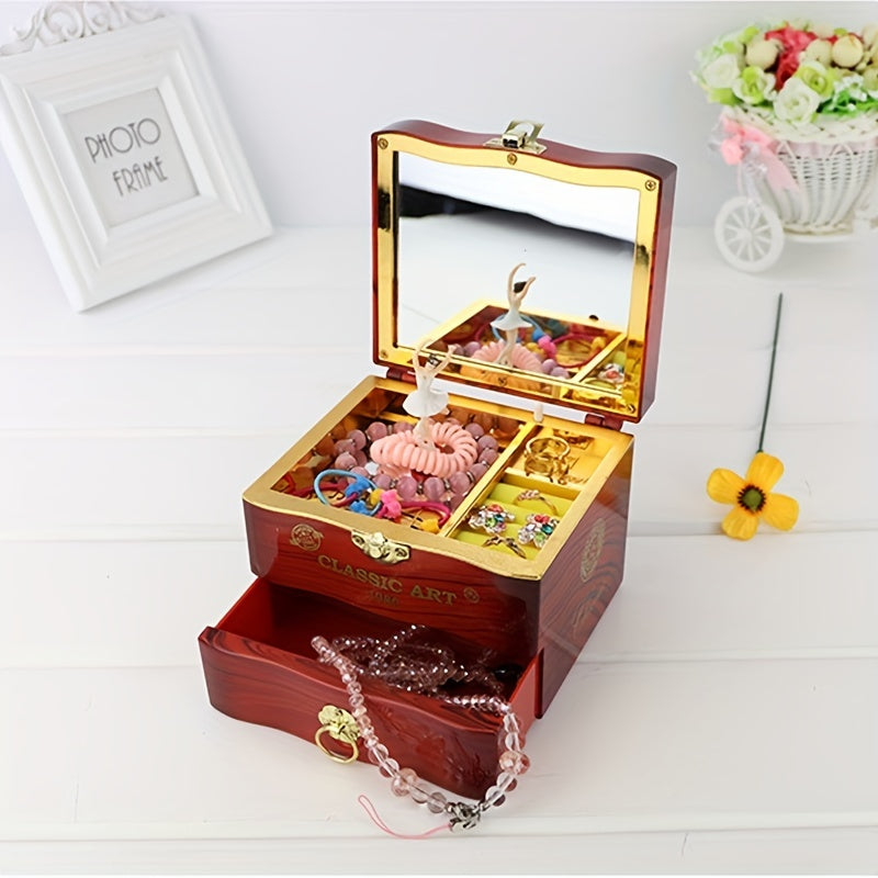 Keep your jewelry organized in style with this elegant Music Rotation Dancing Ballerina Girl Jewelry Storage Box that features a mirror for added convenience.