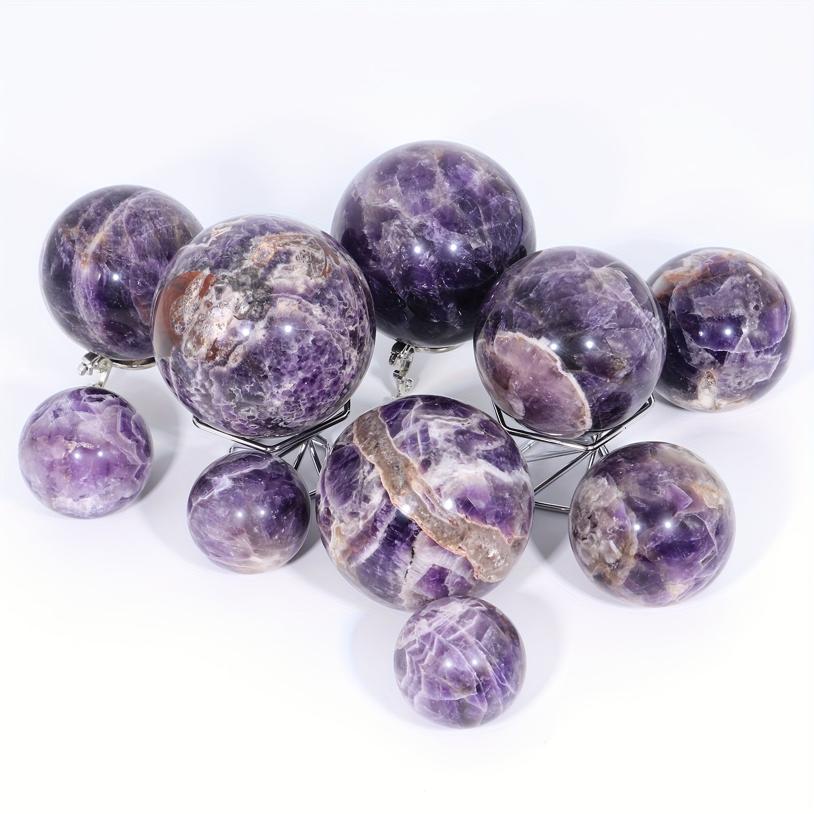 This stunning hand-carved amethyst ball is perfect for interior decoration, reiki healing, and crystal enthusiasts.
