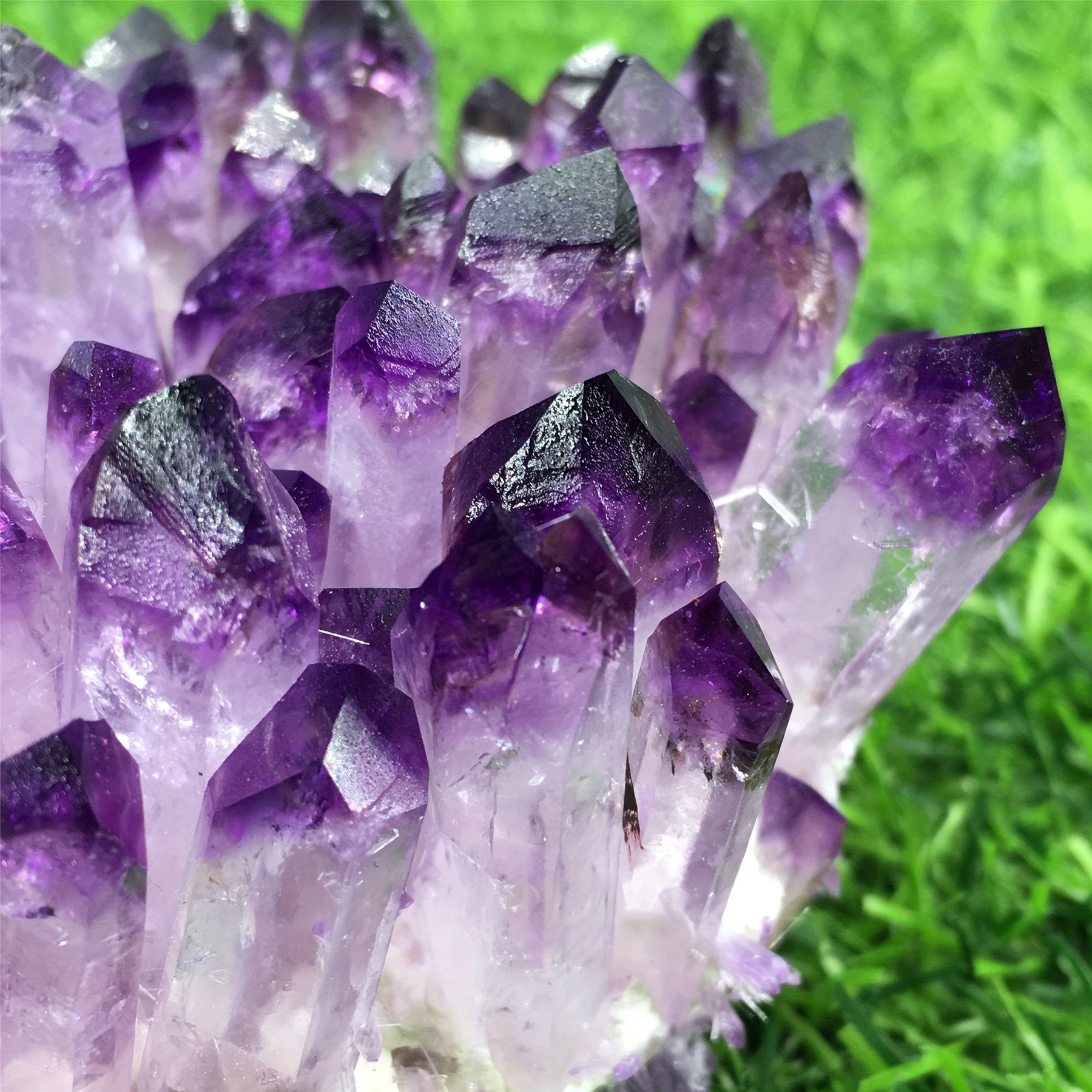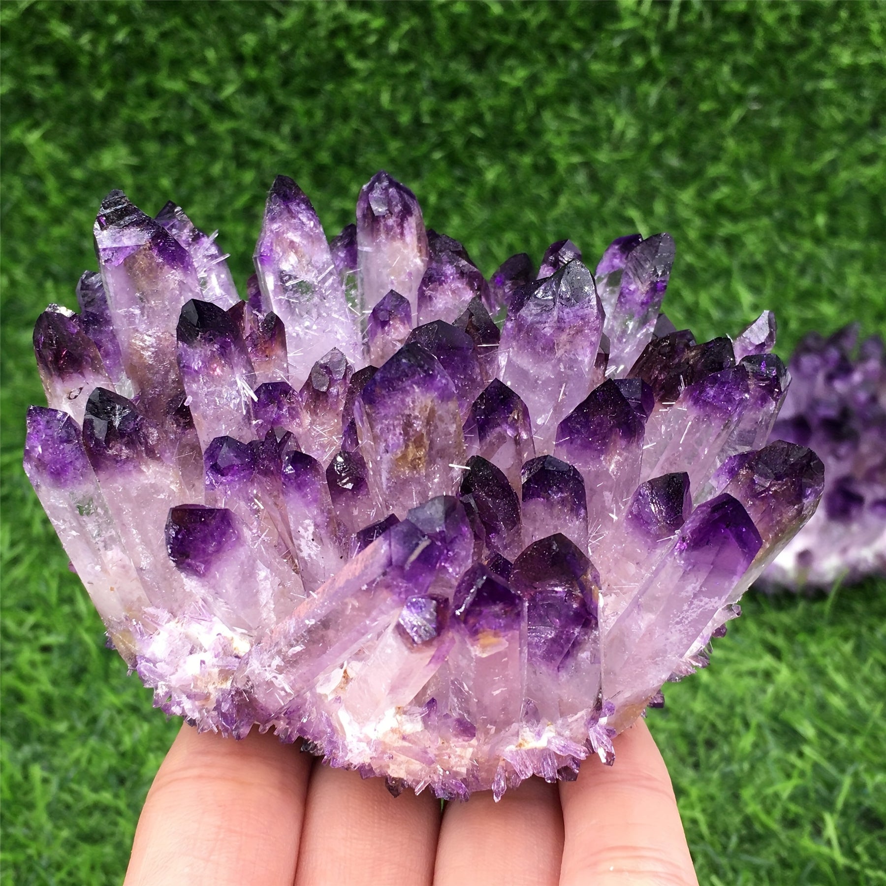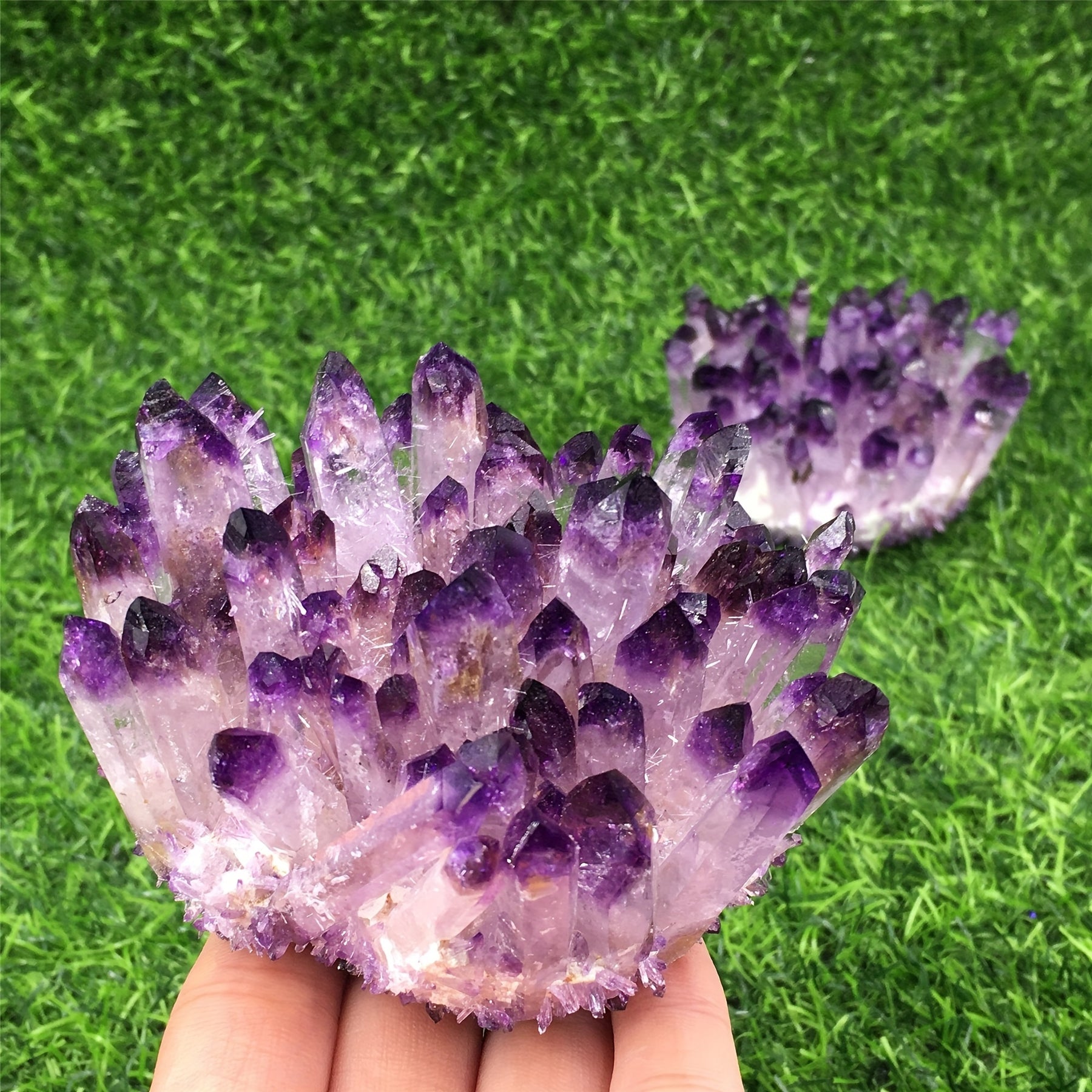 • Natural amethyst cluster with raw stones