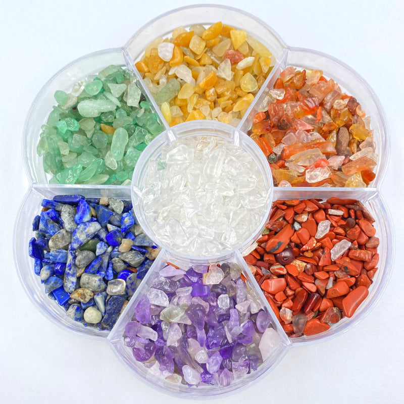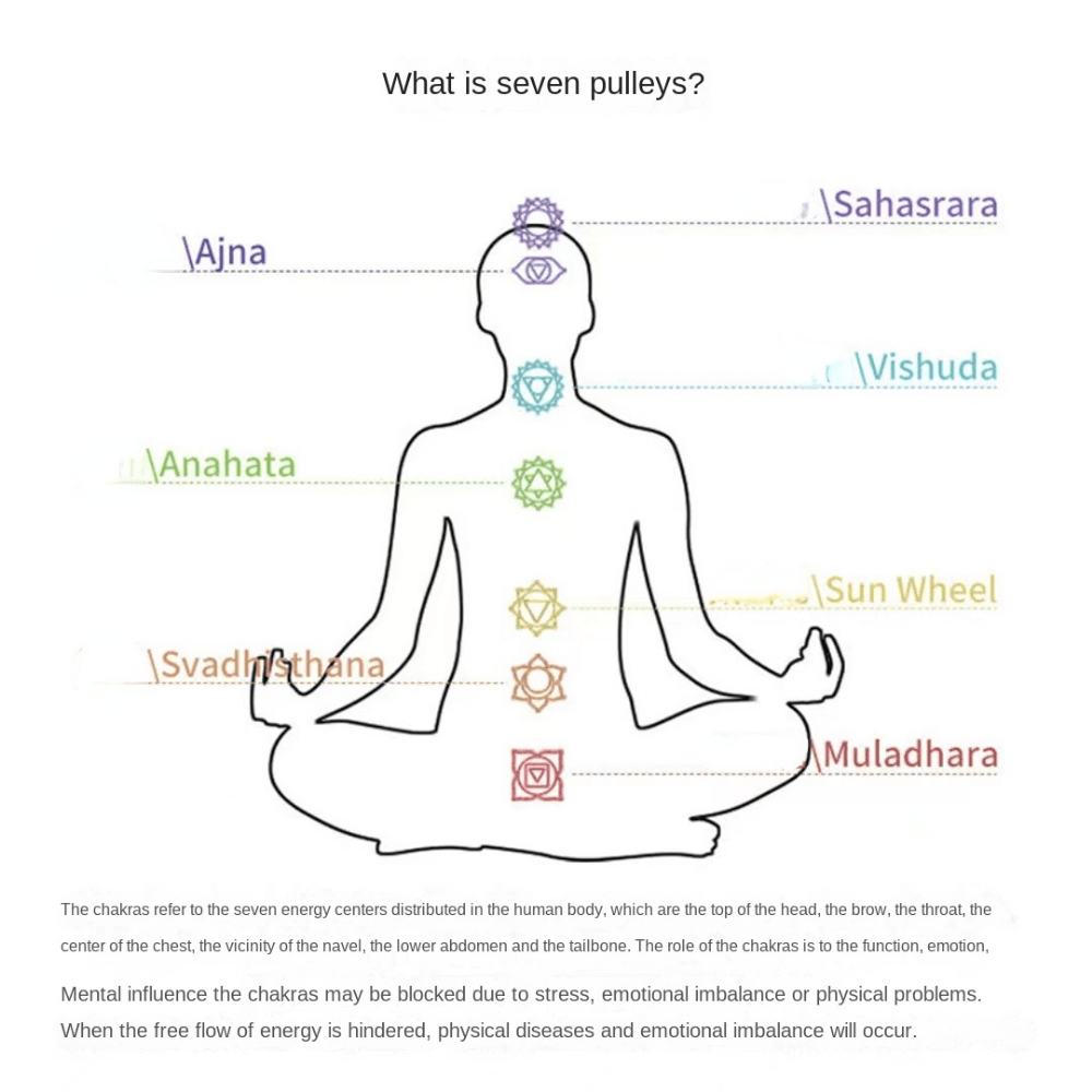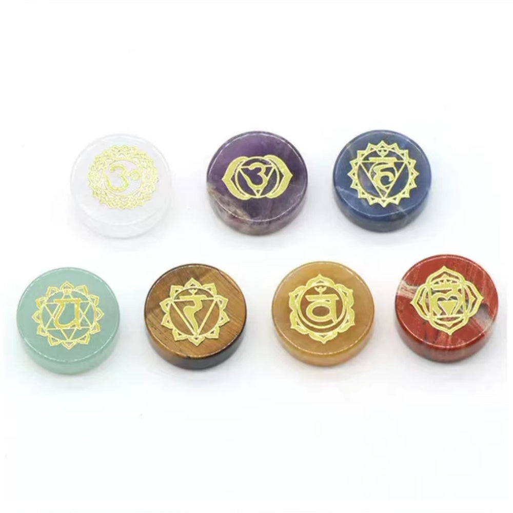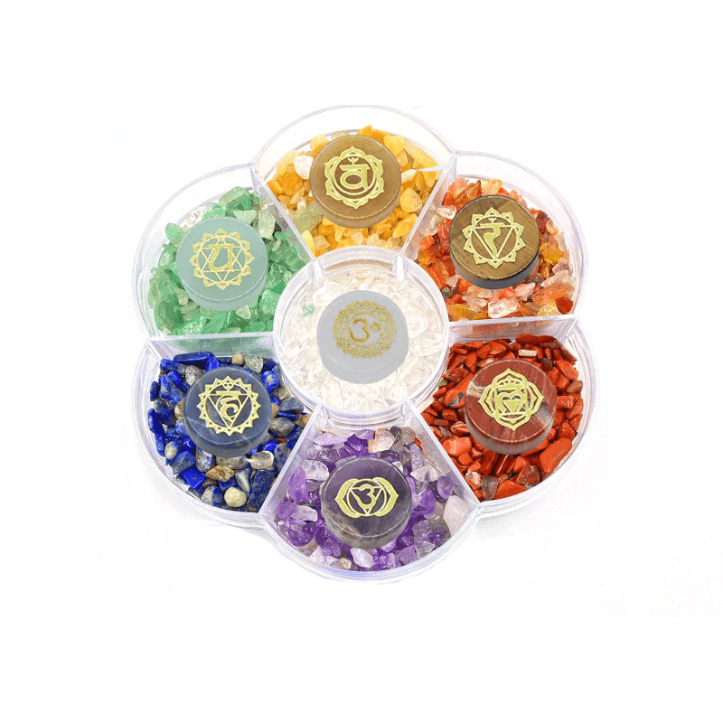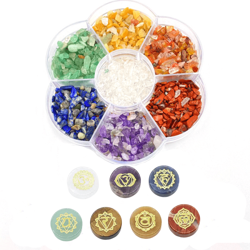 This set includes seven different colorful stones that can be used for yoga practices and meditation. Each stone has unique properties and energies.
