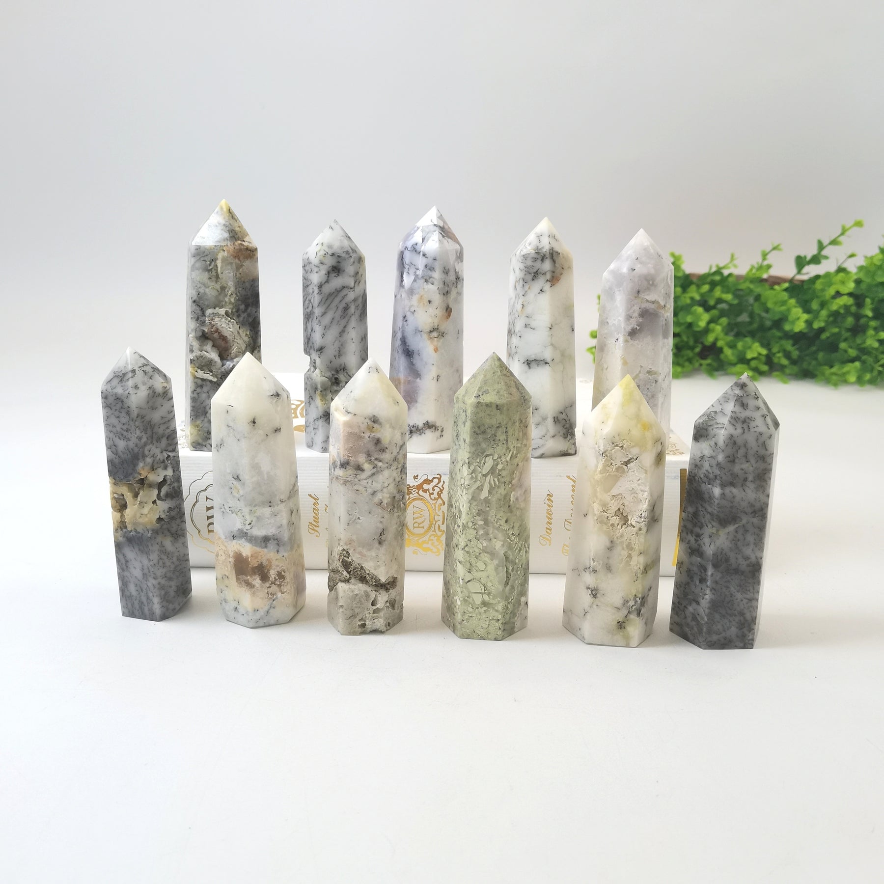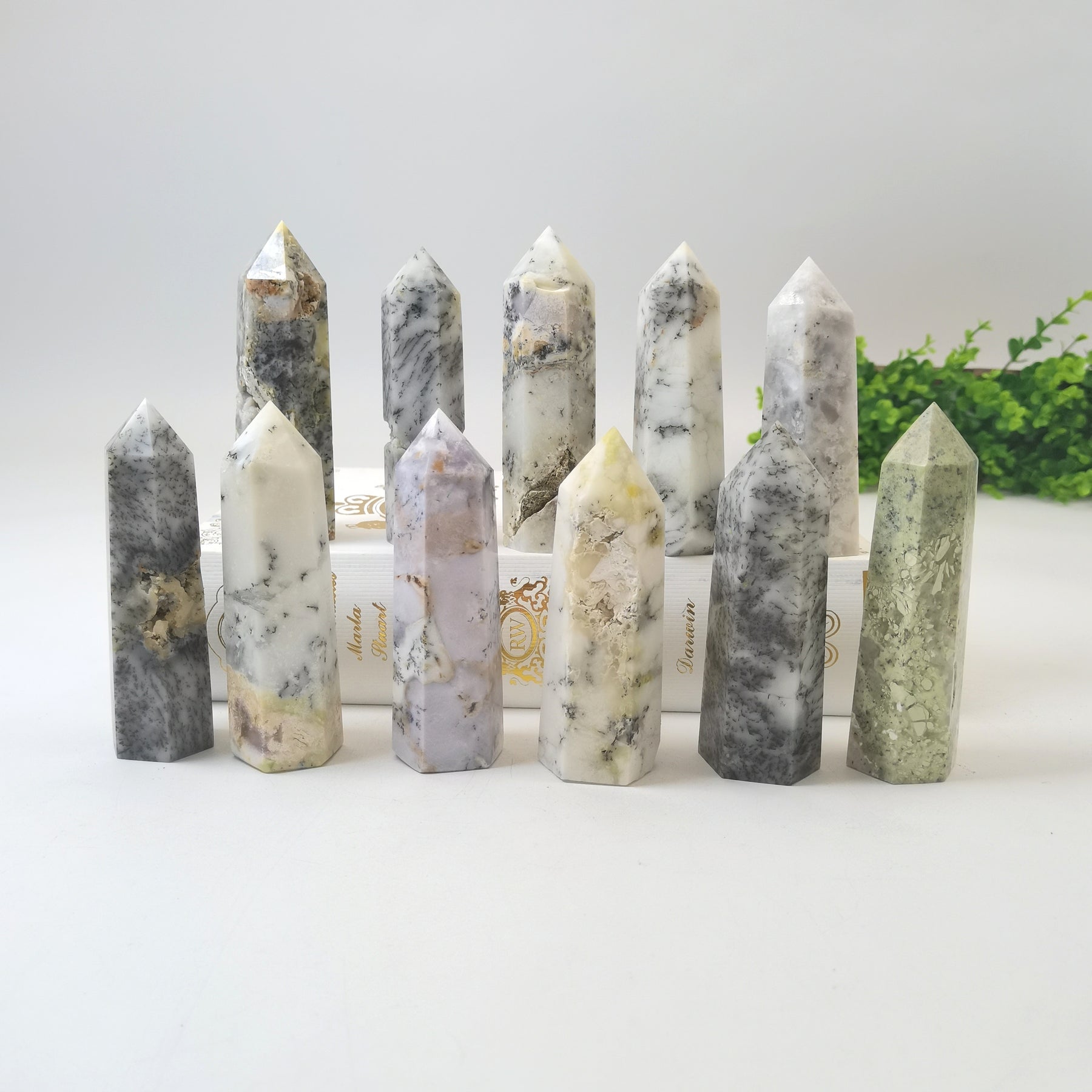 Natural Crystal Dendritic Agate Energy Wand Meditation Reiki Healing