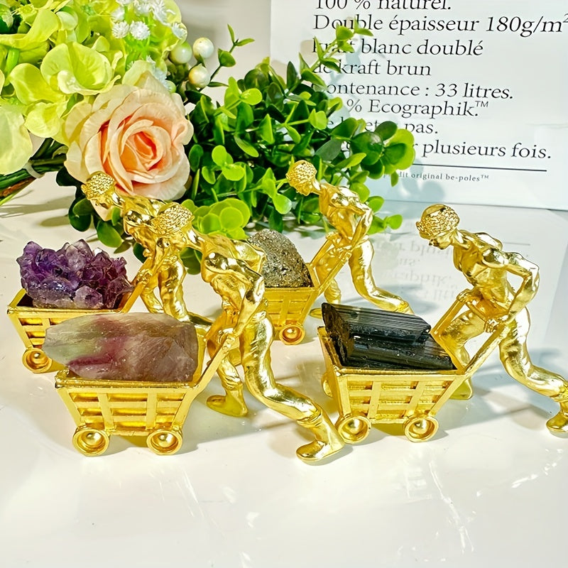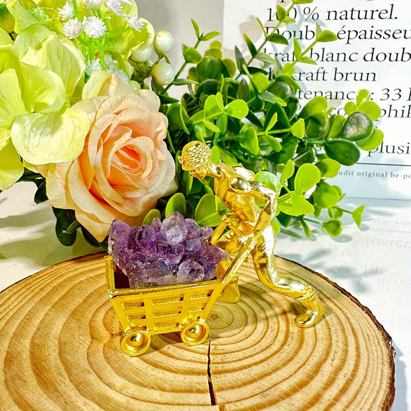 This beautiful natural crystal raw stone miner metal carvings ornament is perfect for energy healing, Reiki decoration, and more. It makes a thoughtful gift for Mother's birthday or as children's toys. It can also be used as a garden decoration.
