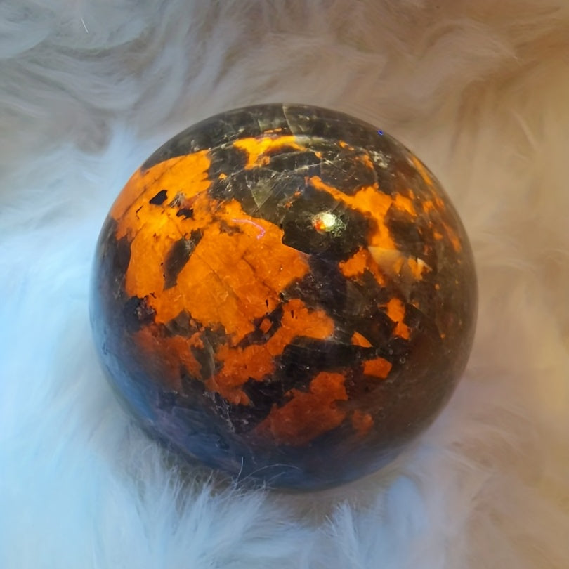This exquisite flame stone ball ornament is made of natural quartz crystal, perfect for Christmas gift, holiday gift, home decor, and healing energy.