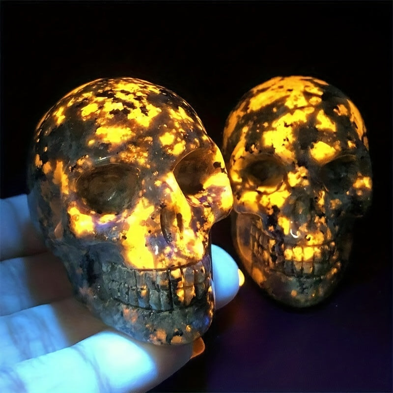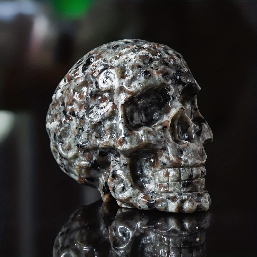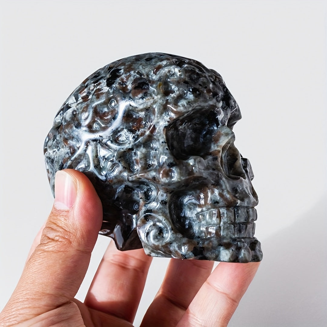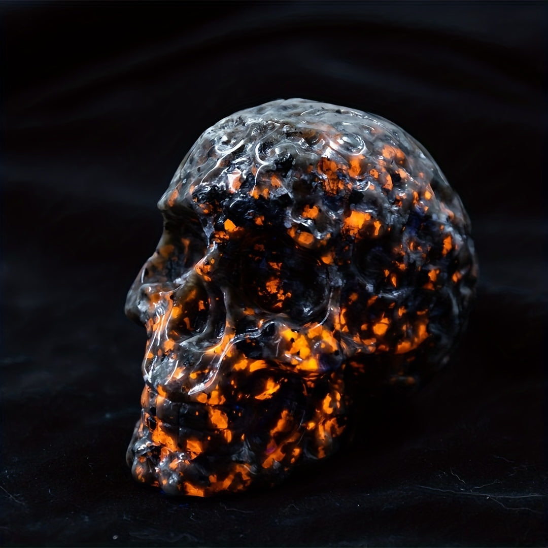 Enhance your space with this Natural Flame Stone Healing Crystal Skull. Ideal for meditation, yoga, interior decoration, and DIY healing.