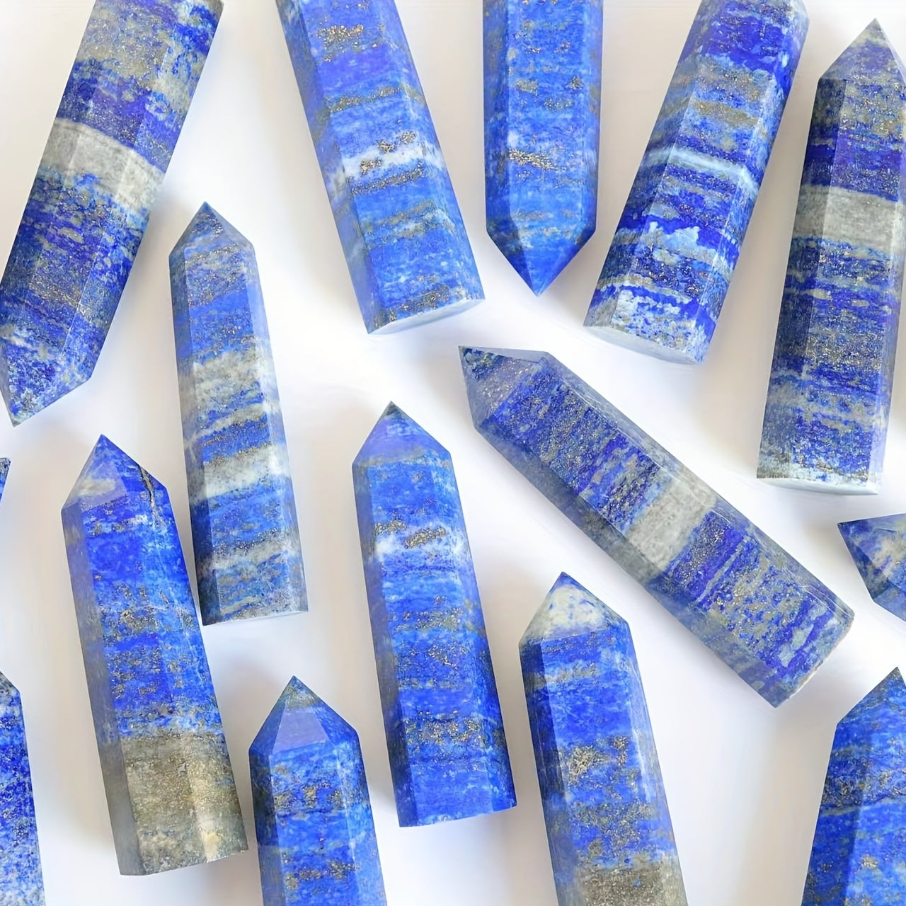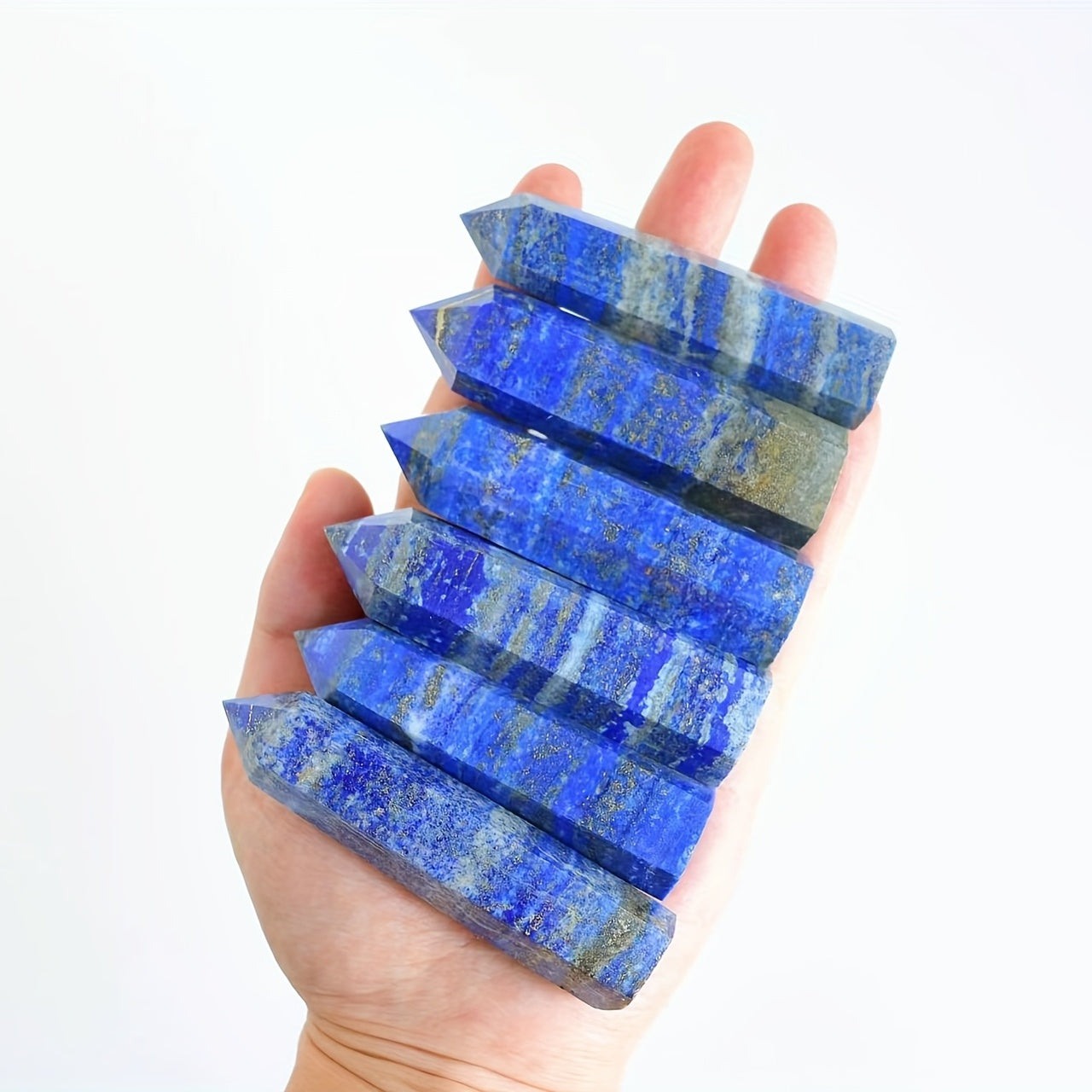 This beautiful hexagonal column crystal made of natural lapis lazuli is a great healing stone for home decoration or as a DIY gift. It has healing properties and adds an elegant touch to any space.