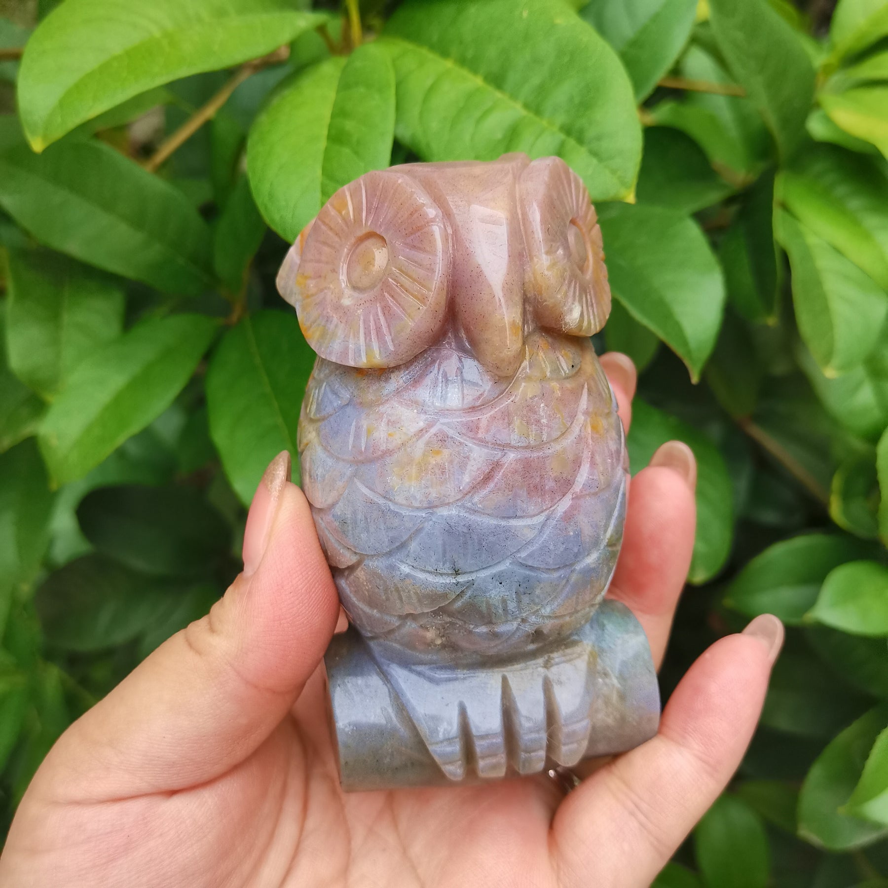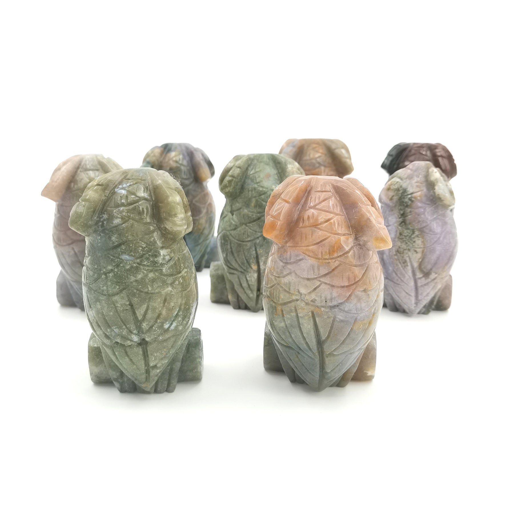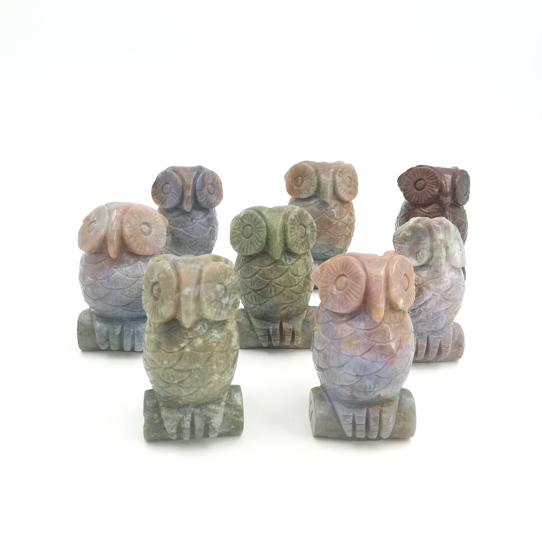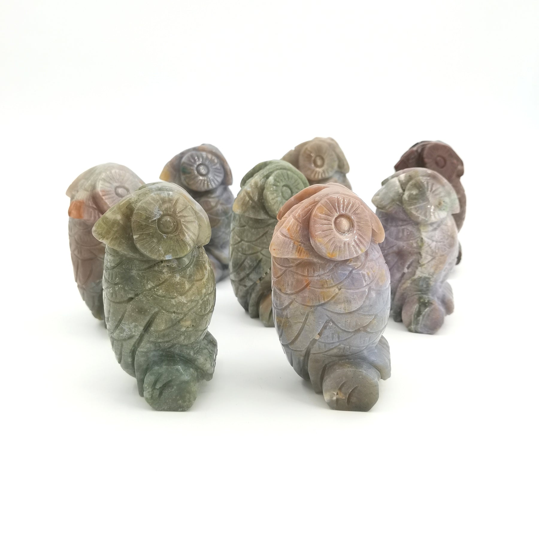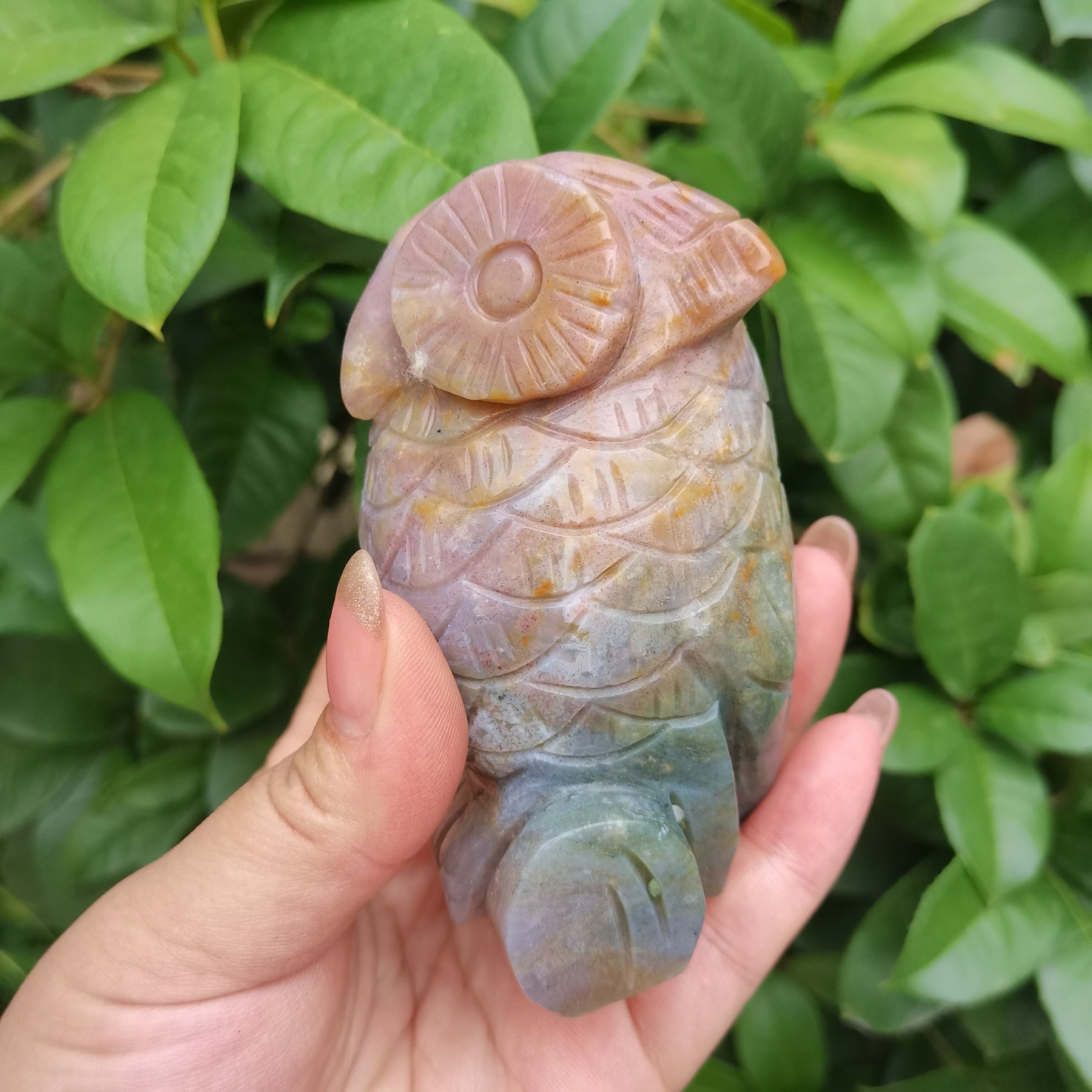 This exquisite owl carving made from natural marine jade adds a touch of elegance to your home decor. Perfect as a tabletop decoration or holiday accent.