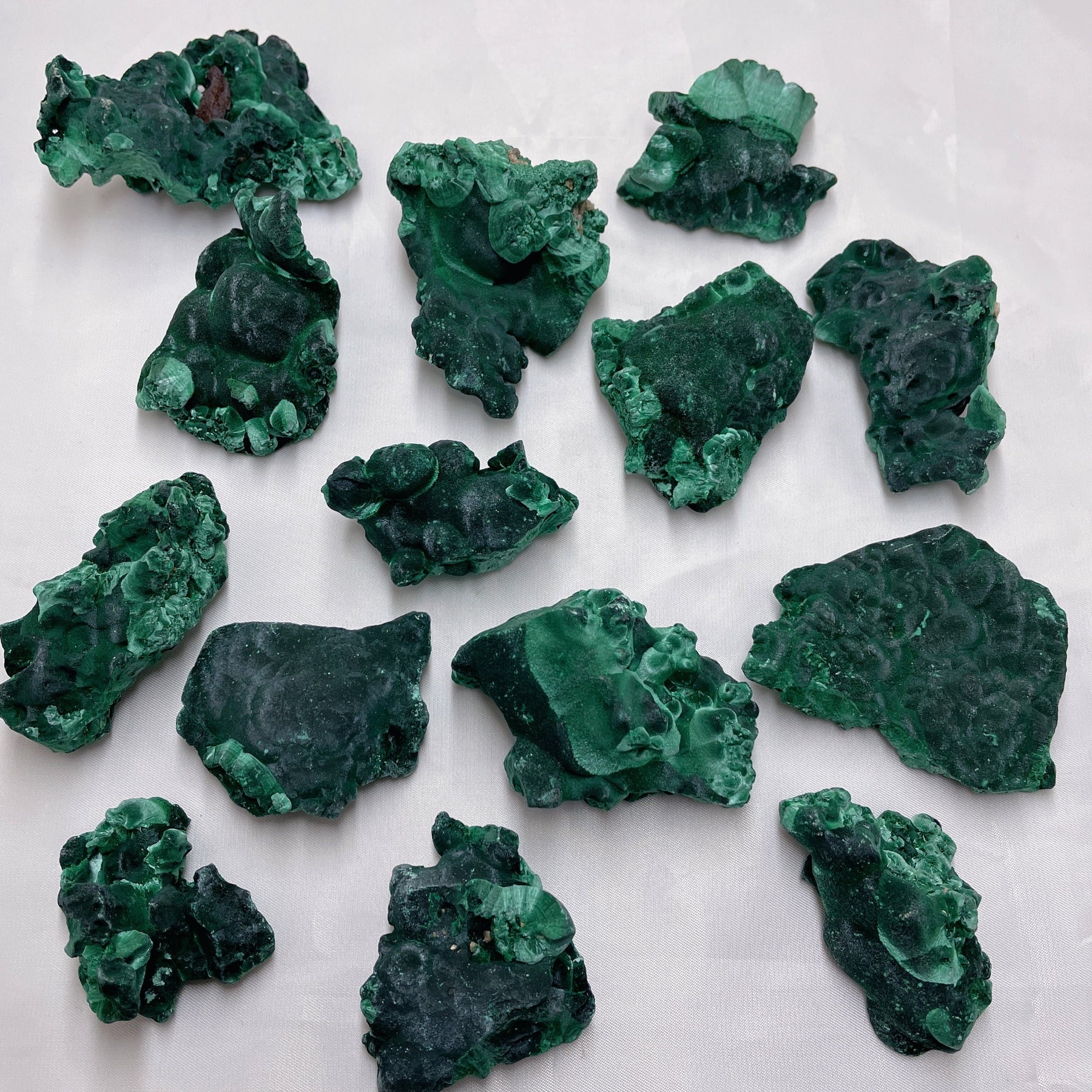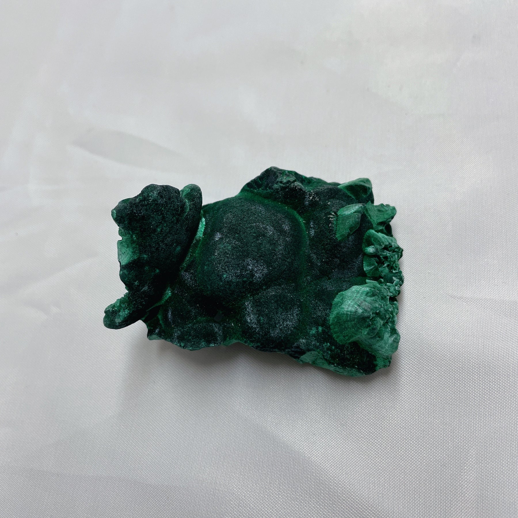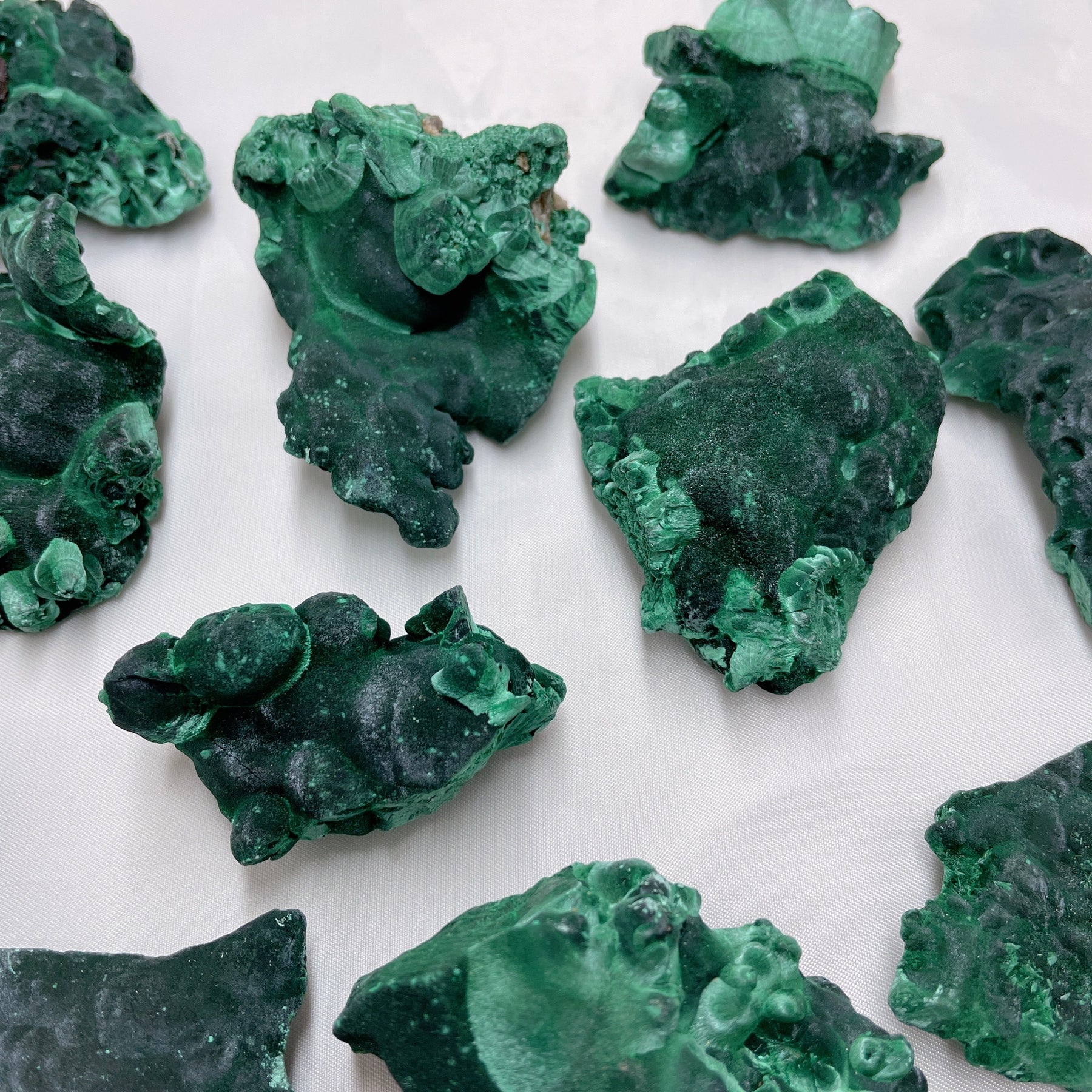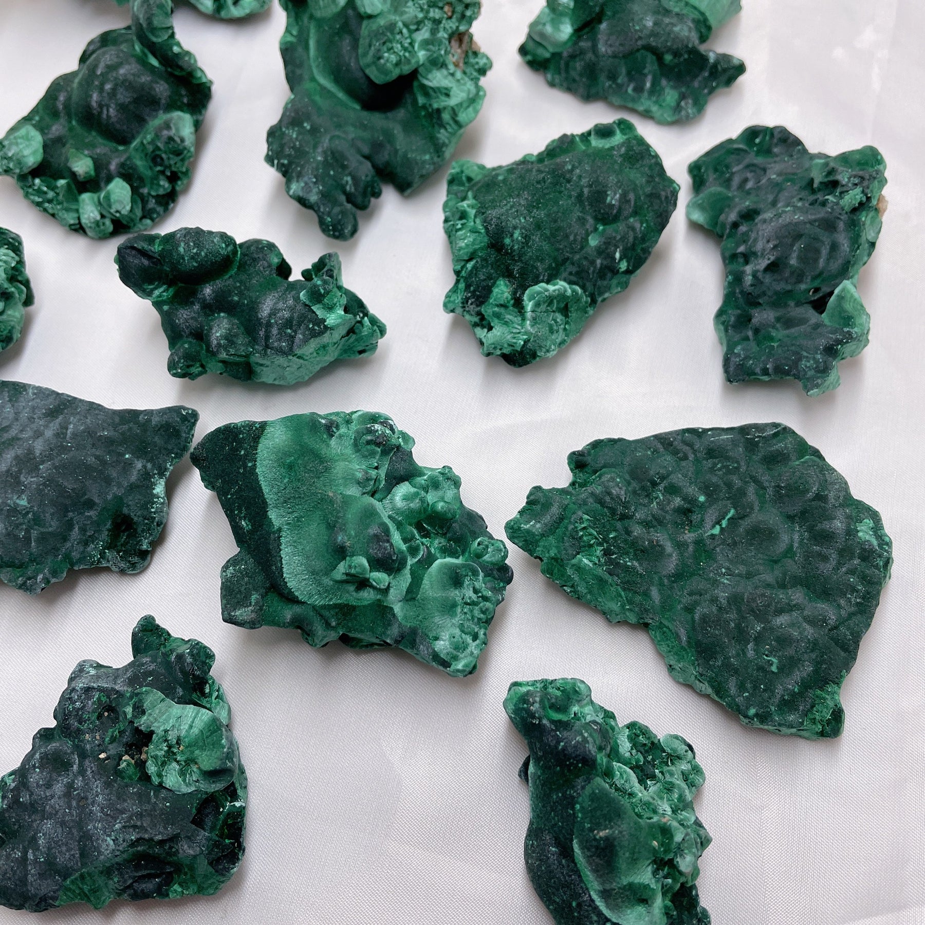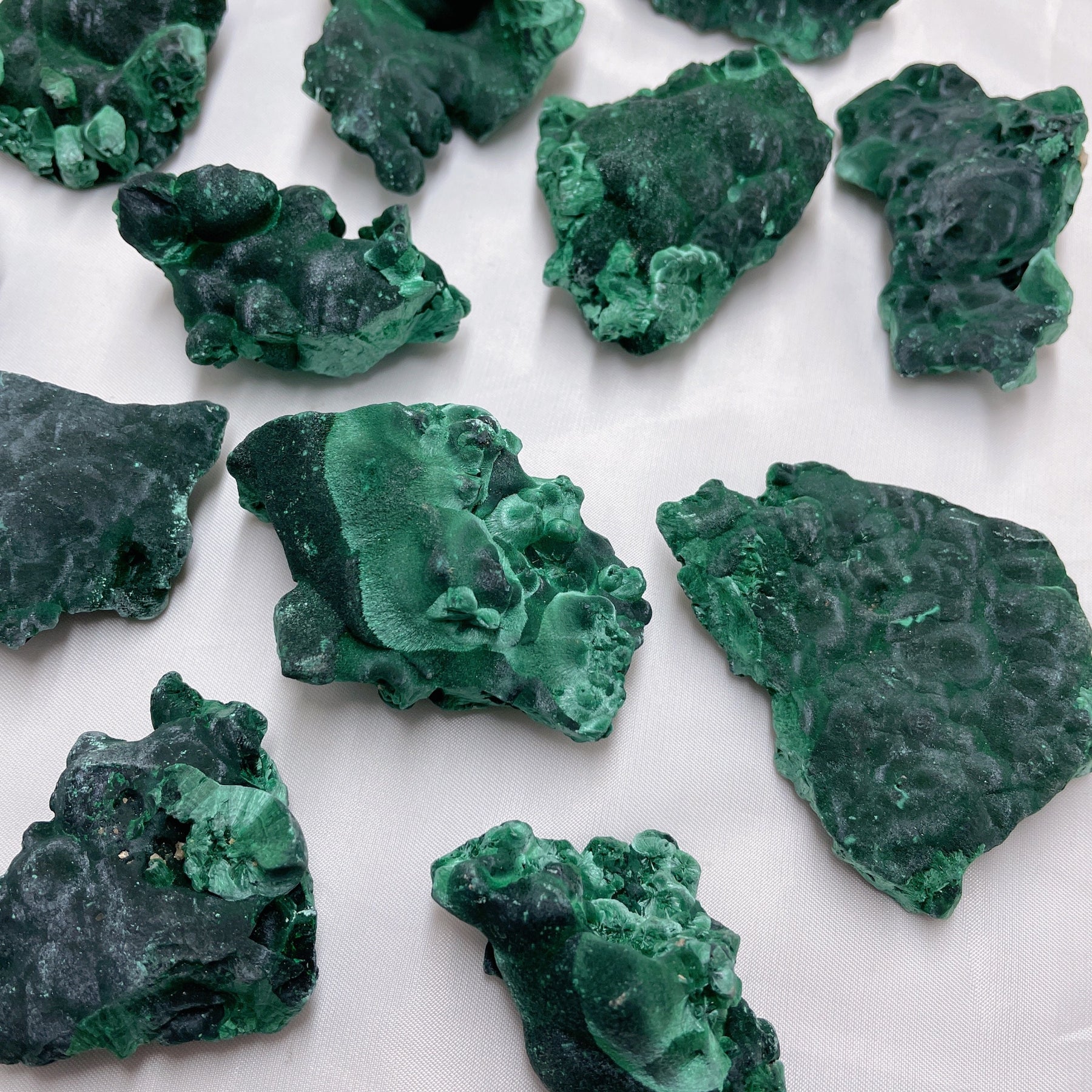 This raw Velvet Malachite specimen exhibits a stunning Cat's Eye effect. Harness the energy of Malachite for crystal healing and spiritual growth.