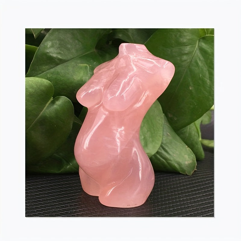 Enhance your decor with this beautiful rose quartz crystal carving featuring a Goddess design. Perfect addition to your crystal collection or as a healing decor piece.