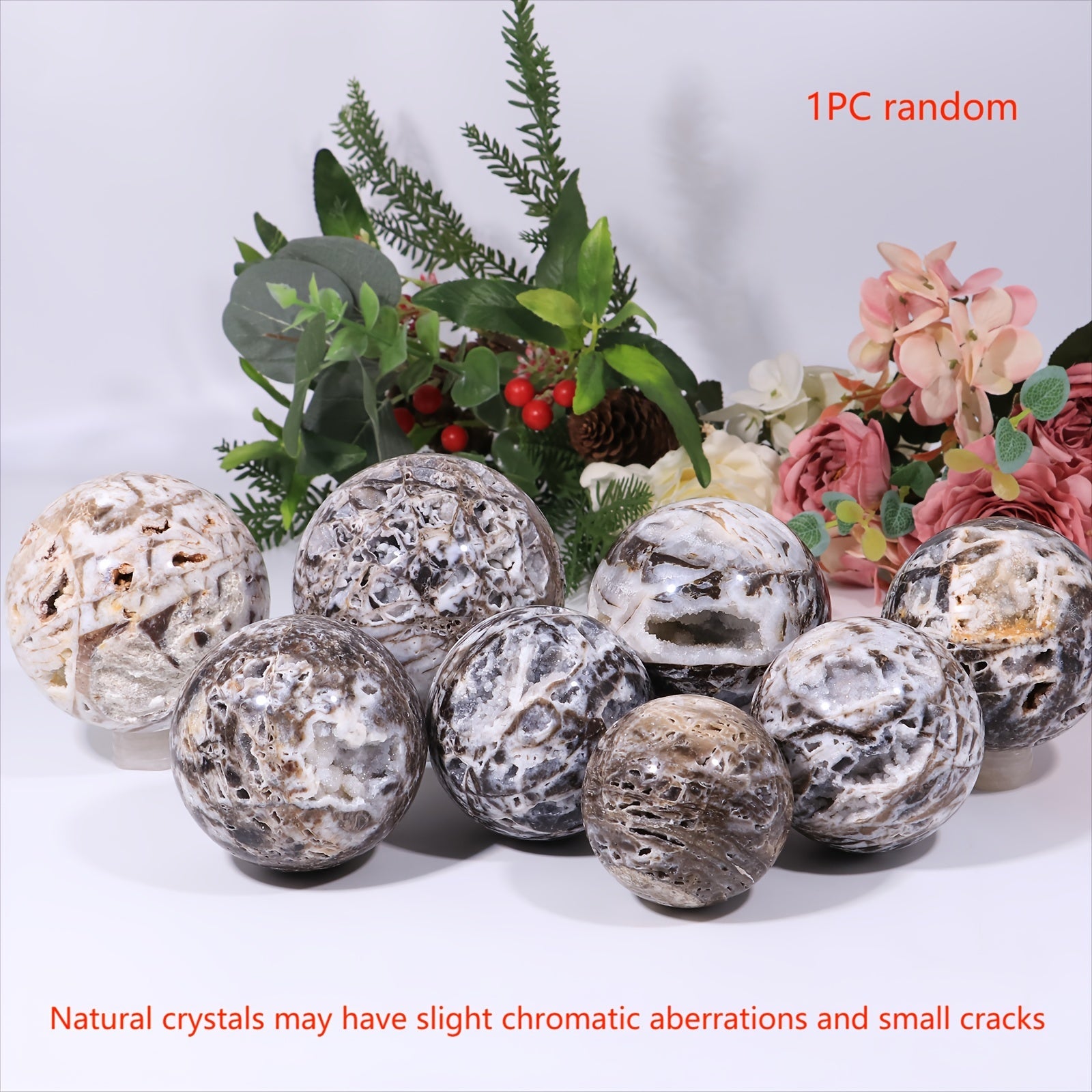 This 90mm natural sphalerite geode quartz crystal sphere is perfect for reiki healing, home decoration, divination, or as a unique mineral sample. Give it as a crystal gift!