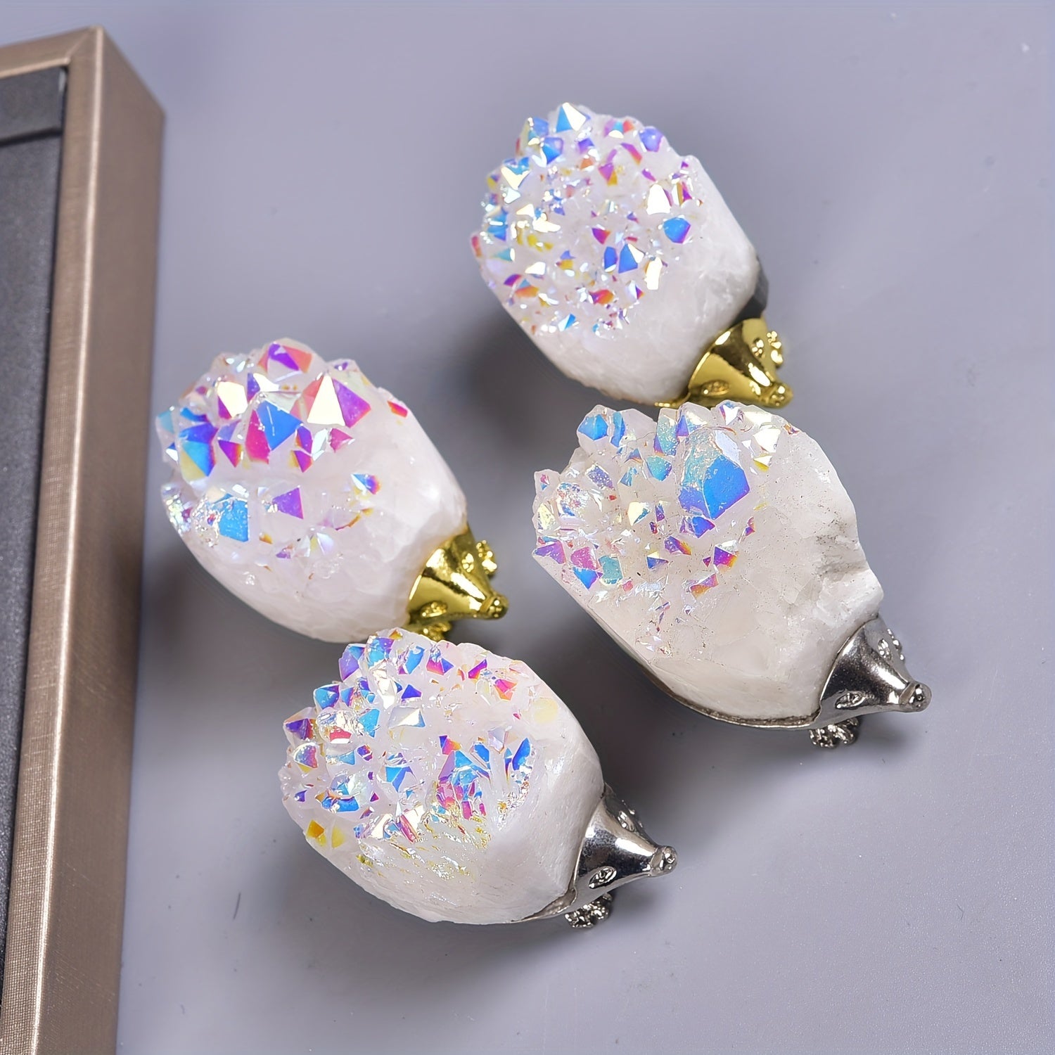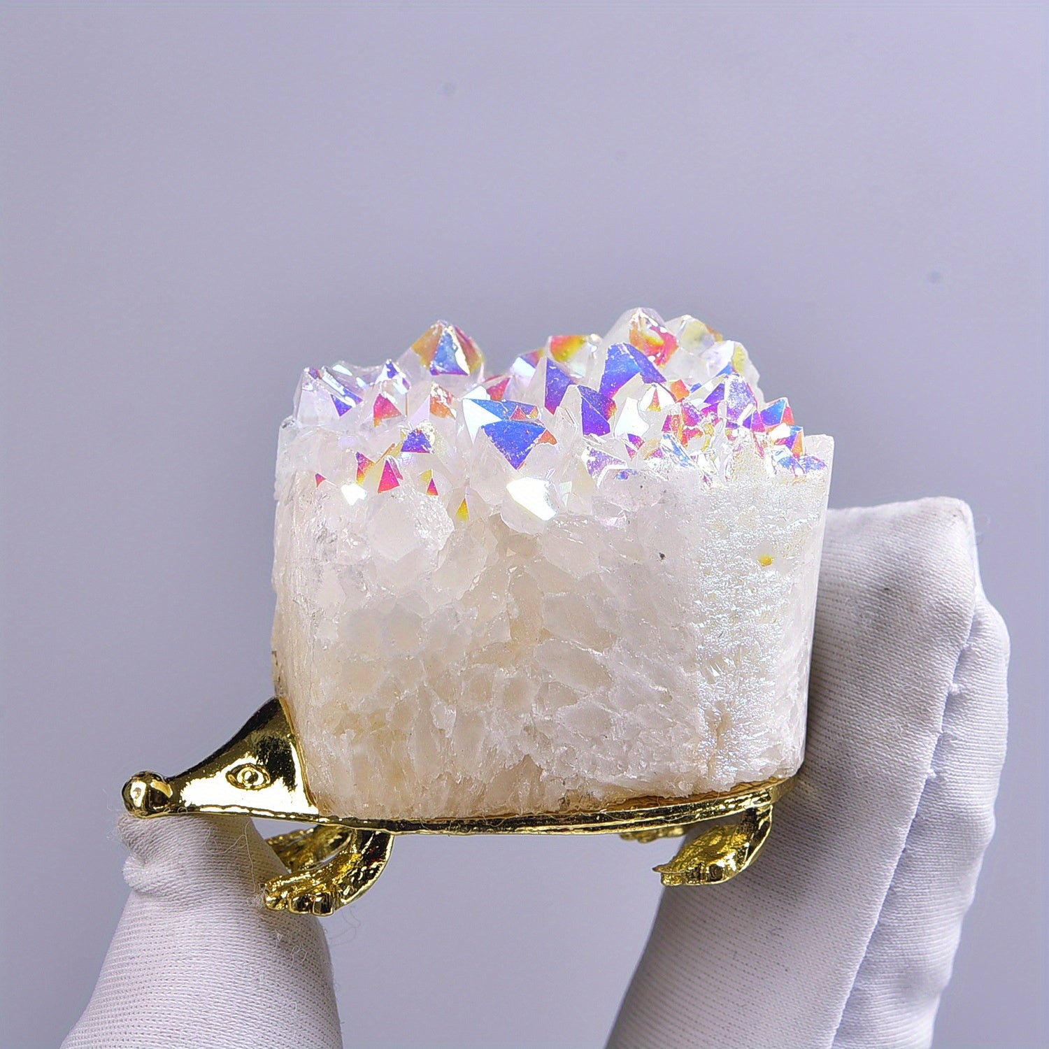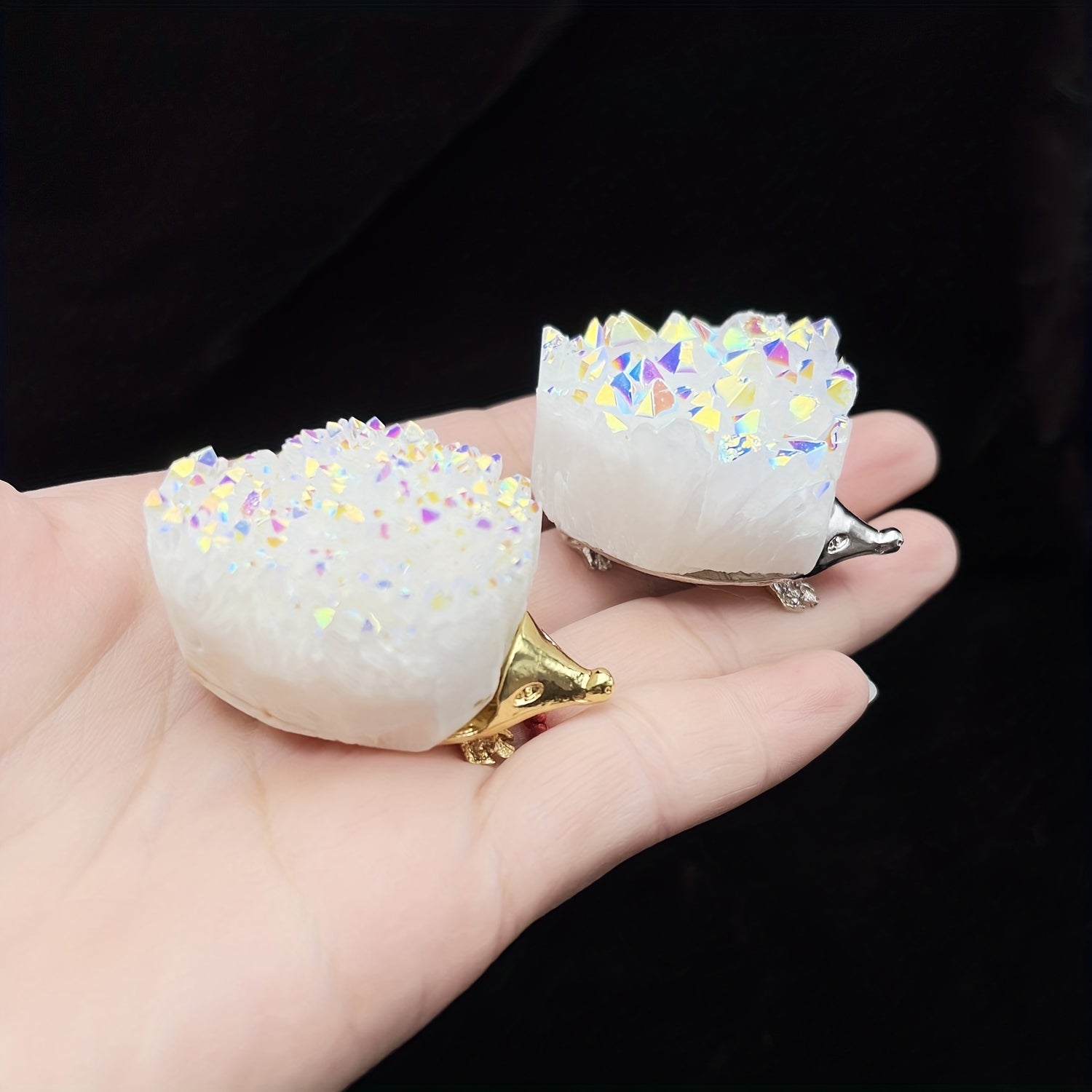 Adorn your desk with this unique hedgehog ornament made of natural stone electroplated crystal clusters. Perfect for adding a touch of creativity to your workspace.