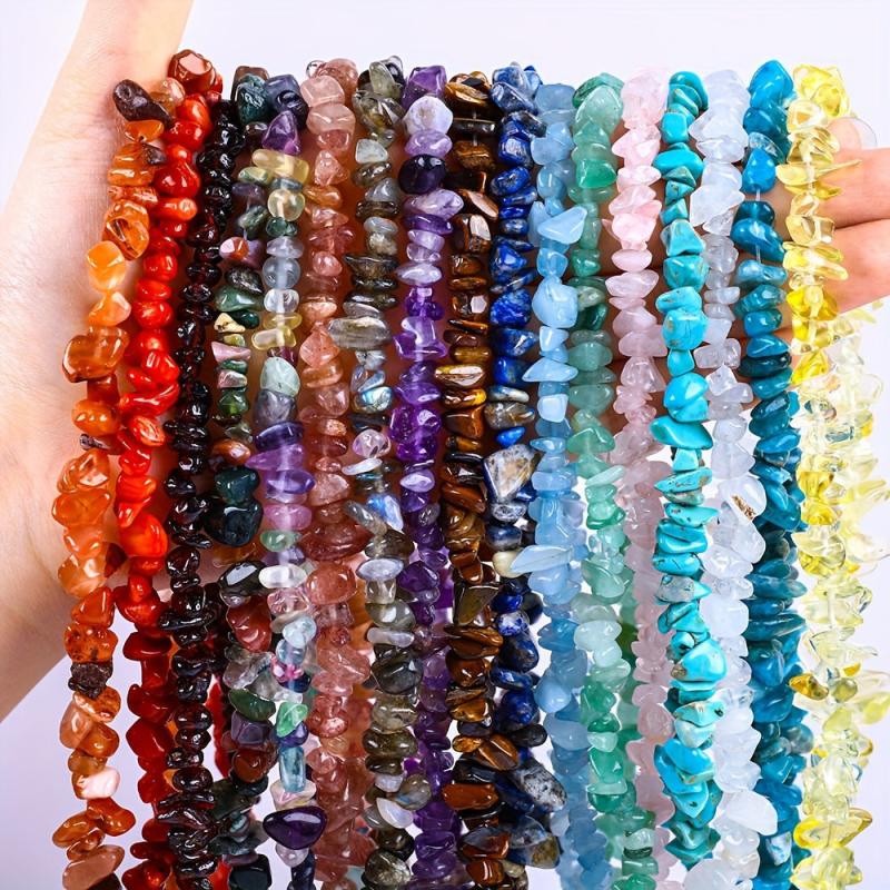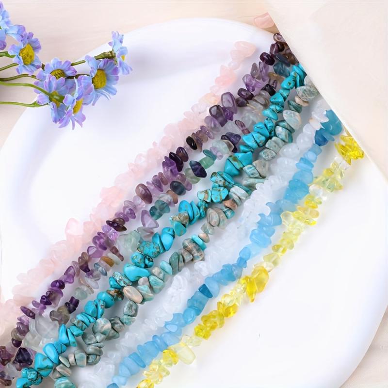 Elevate your jewelry creations with these natural stone irregular gravel chips beads. Perfect for bracelets, necklaces, earrings, and more. Each pack contains approximately 40g of beads measuring 16 inches in length.
