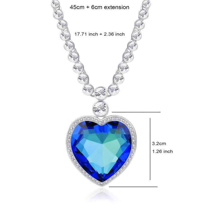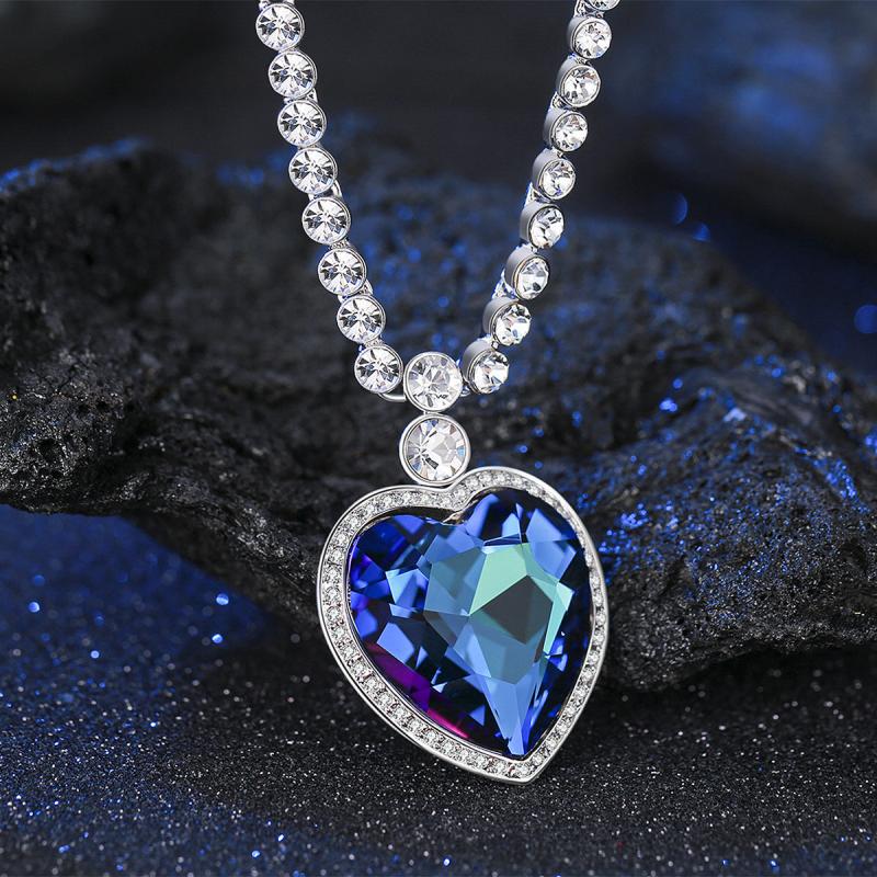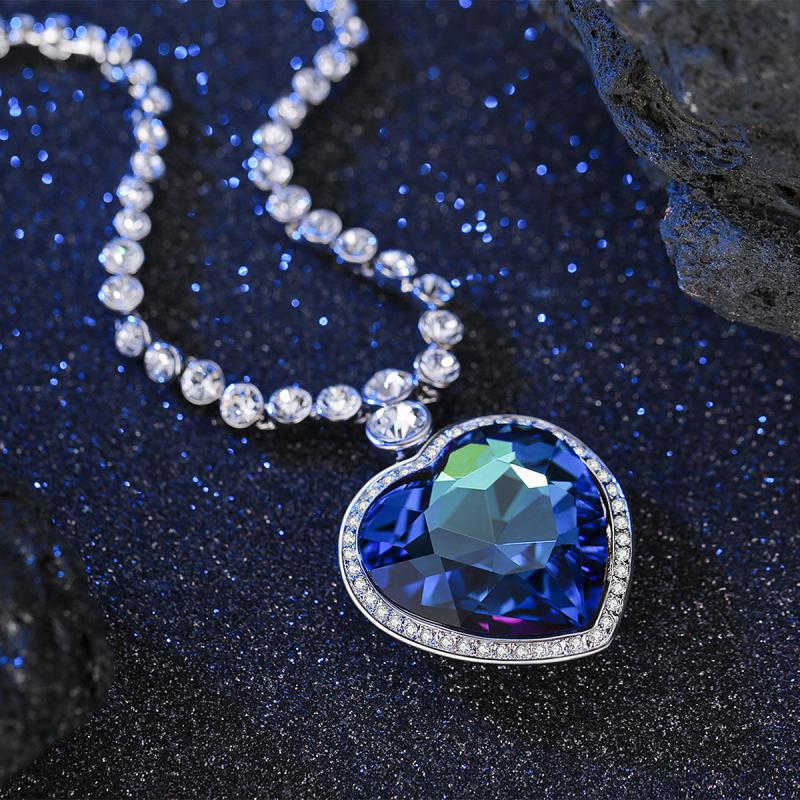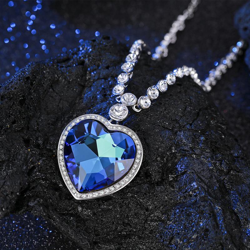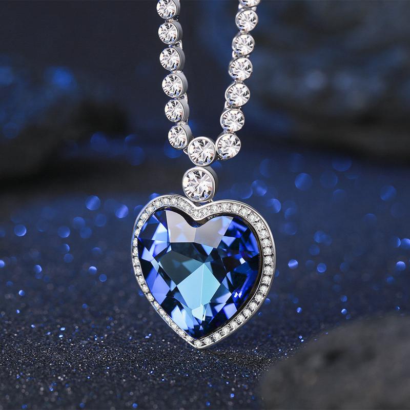 This elegant heart-shaped necklace is inspired by the Titanic and features clear gemstones. It is plated in a golden finish, making it a perfect wedding gift for her.