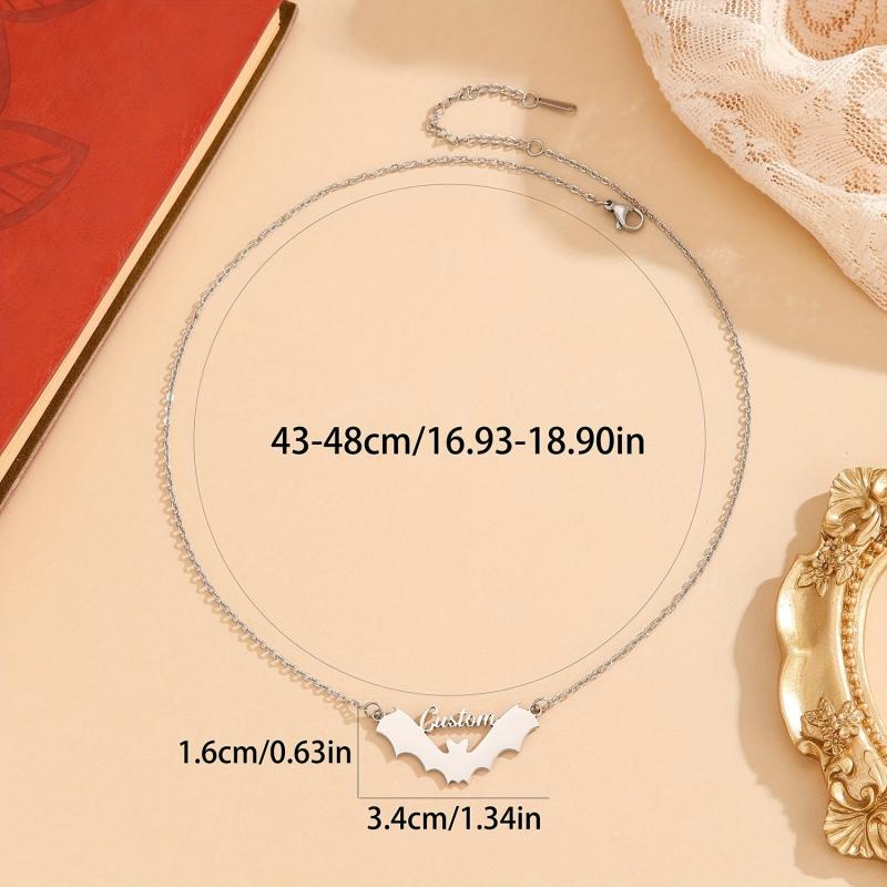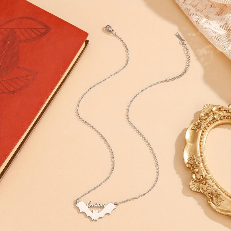 This custom Halloween bat pendant necklace features your name for a spooky and stylish accessory.
