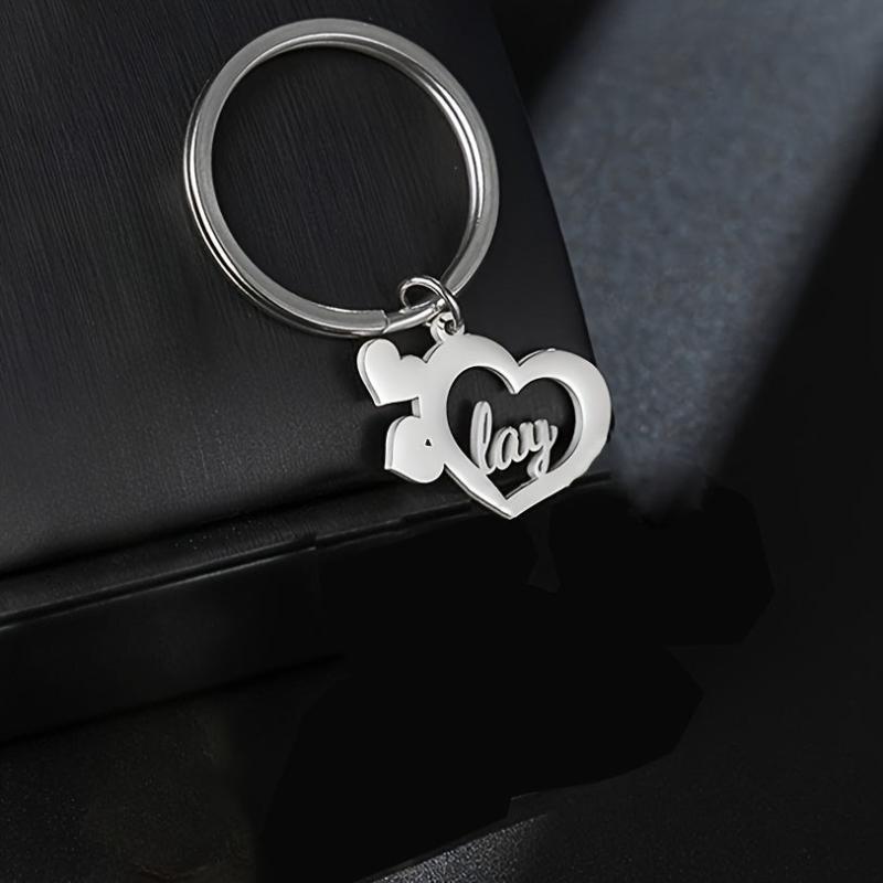 This adorable keychain features a heart shaped design with sequins, cartoon, and music themed alphabet. Customize it with your name for a unique touch.