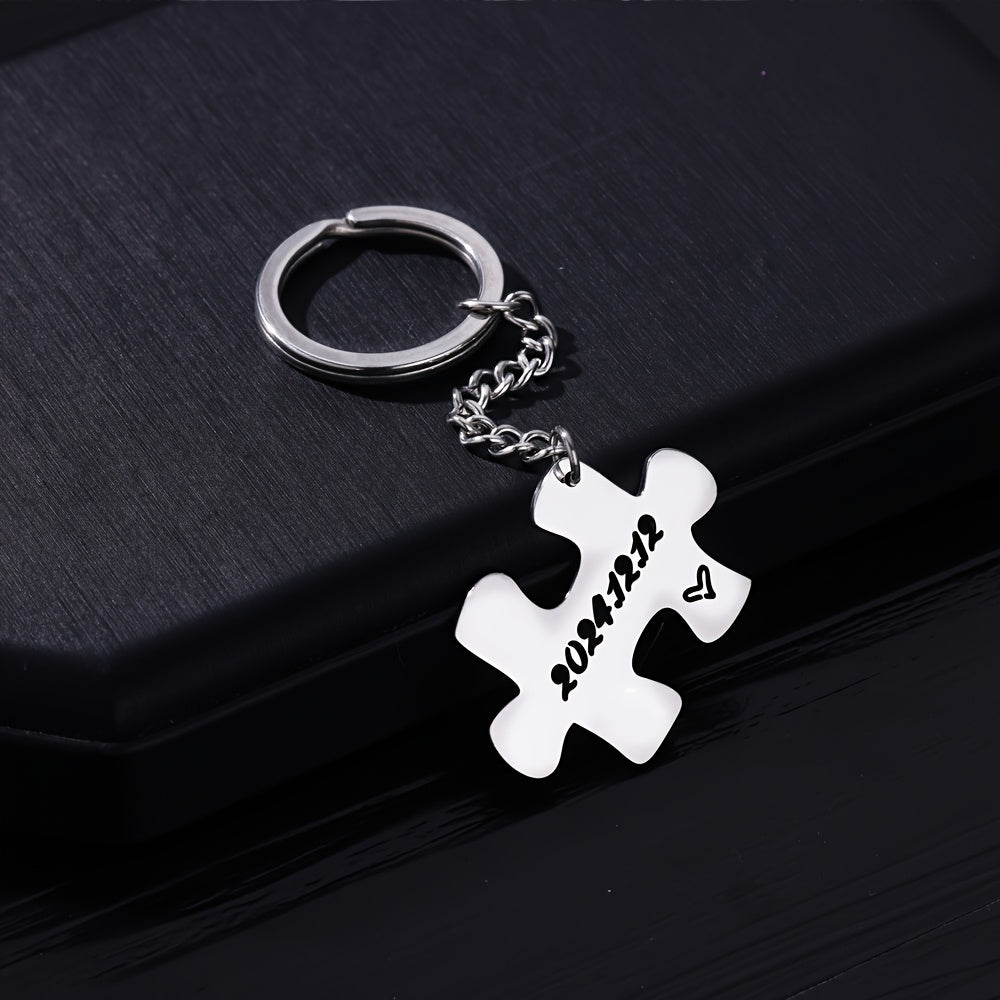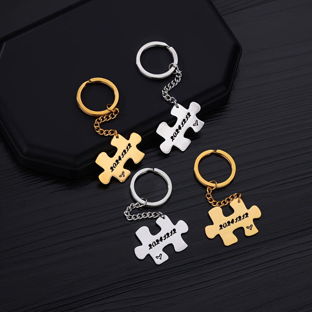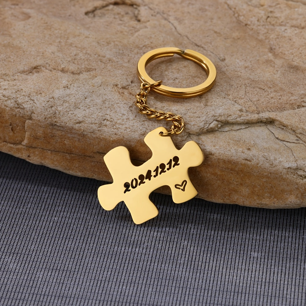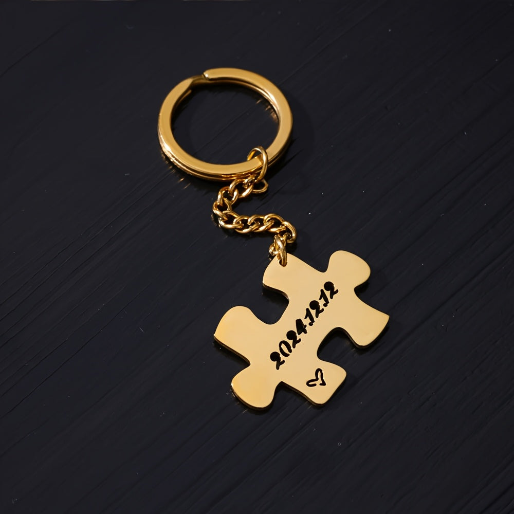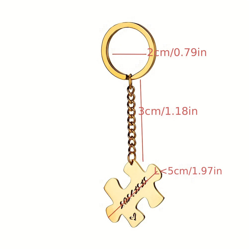 Personalized Stainless Steel Puzzle Keychain - Custom Engraved Name