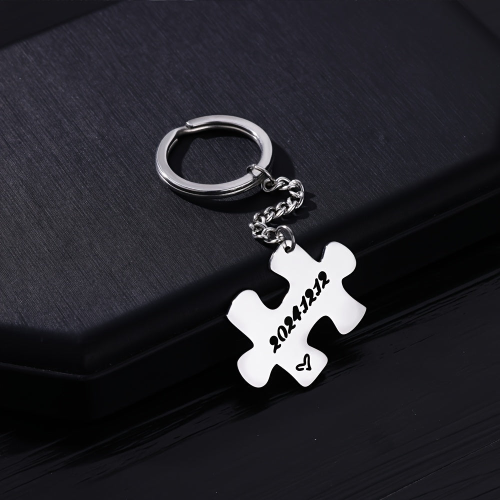Carry a piece of your loved one with you wherever you go with this personalized stainless steel puzzle keychain. Ideal for daily use and special celebrations, this durable accessory will last a lifetime.