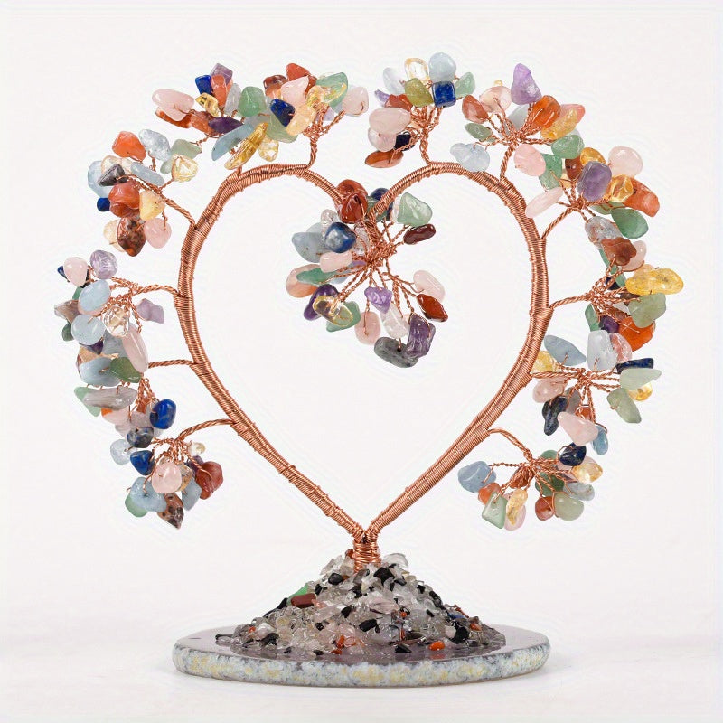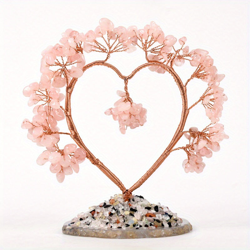 Enhance your space with this beautiful Pink Crystal Chakra Energy Love Tree. Made with natural amethyst and copper wire wrap on an agate slice base, it radiates positive energy and luck. A perfect healthy ornament for your home or office.