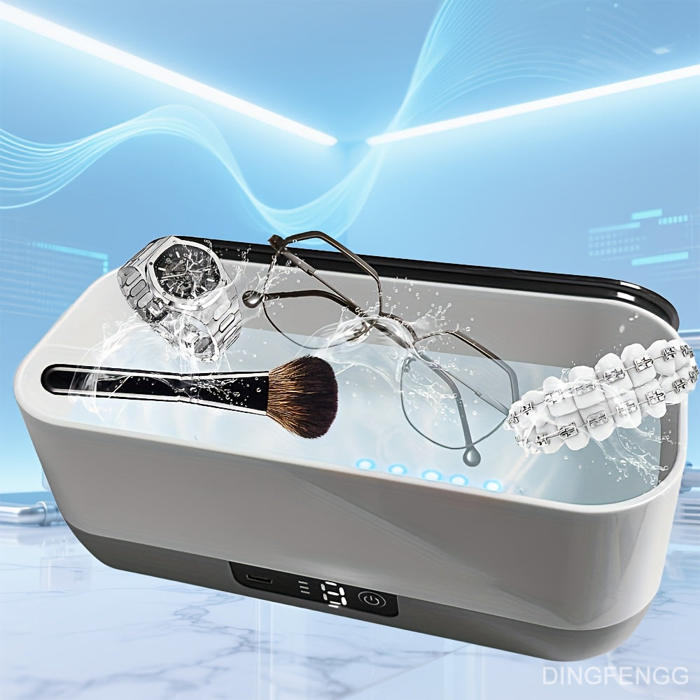 This portable jewelry cleaner uses high frequency vibration to effectively clean glasses, braces, mouthguards, watches, and necklaces.