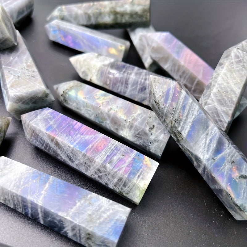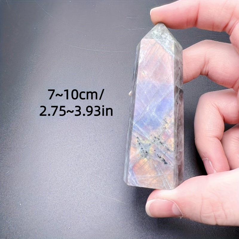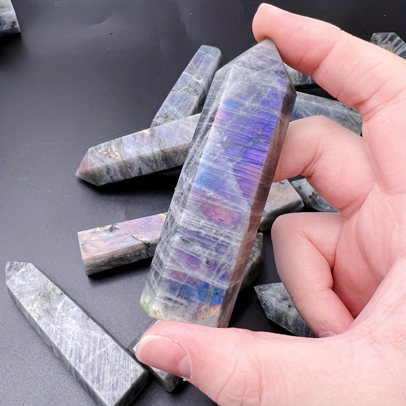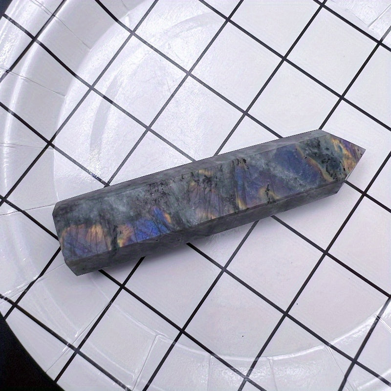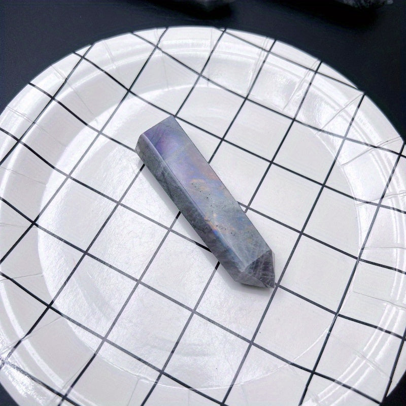 This beautiful healing crystal wand is made of natural quartz stone with a purple flash Labradorite accent. Perfect for energy healing and meditation.
