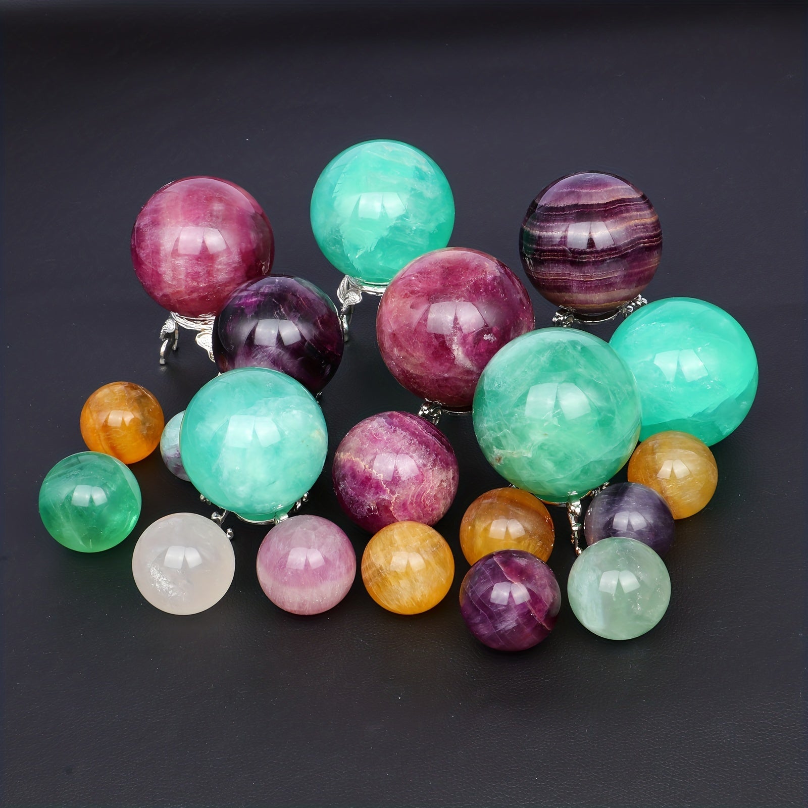 This beautiful rainbow fluorite crystal ball is perfect for meditation, healing, and decoration.
