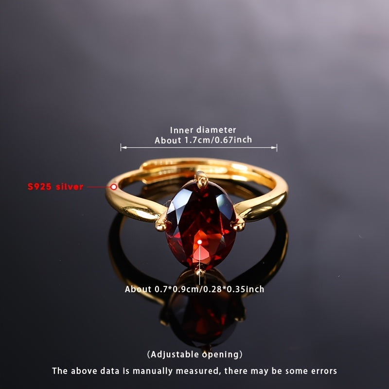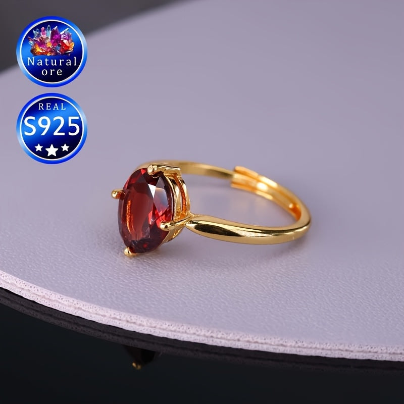Elevate her style with this stunning Red Garnet Gemstone Ring crafted from high-quality S925 sterling silver. This adjustable ring is a perfect gift for any occasion.