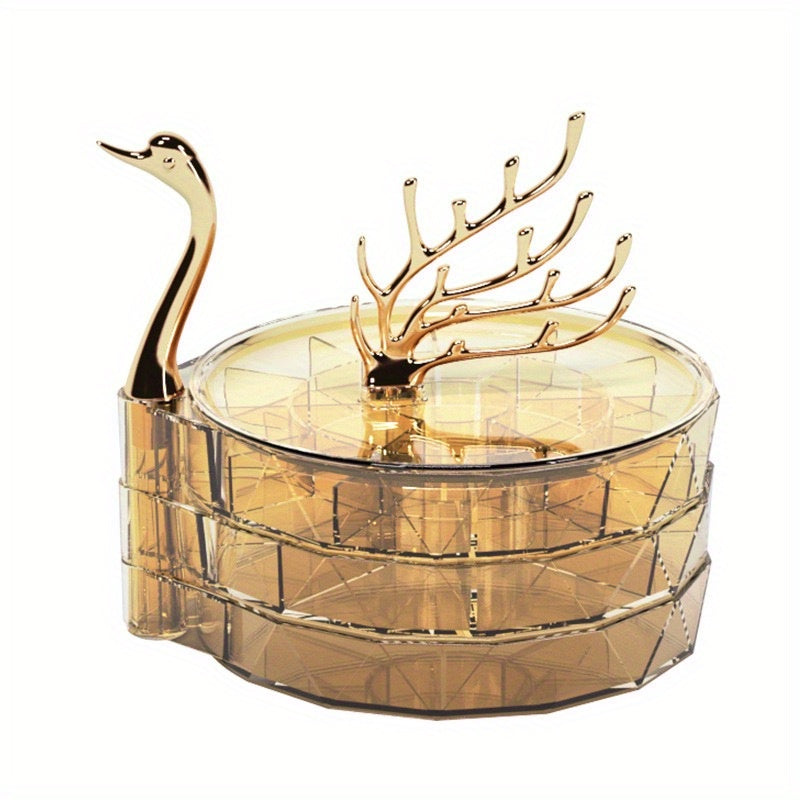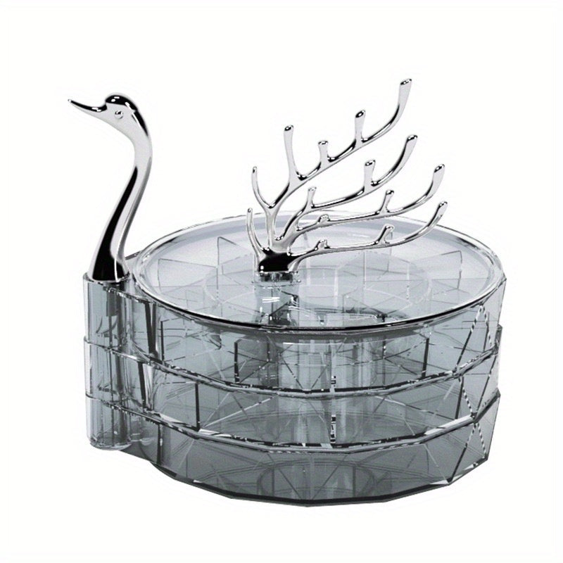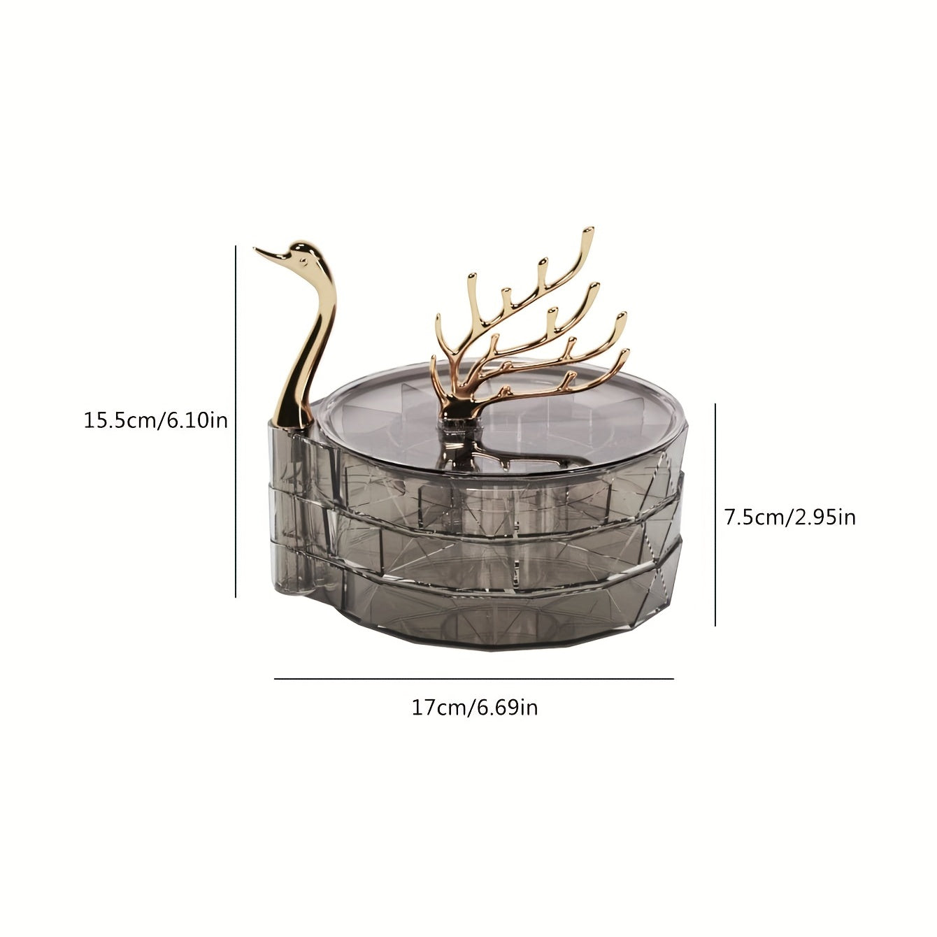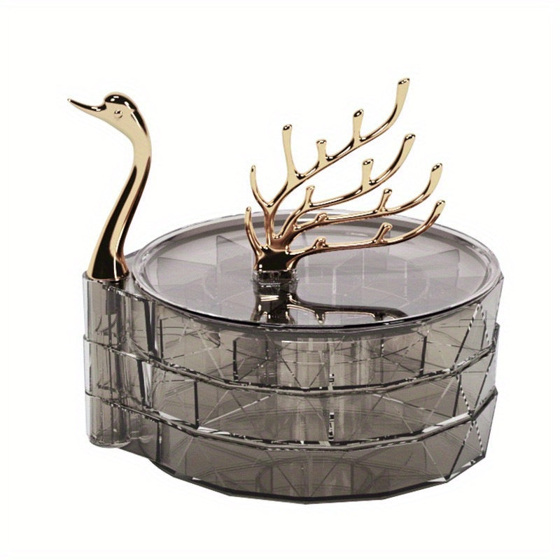 This jewelry box features multiple layers for storing earrings, rings, necklaces, and is dustproof.
