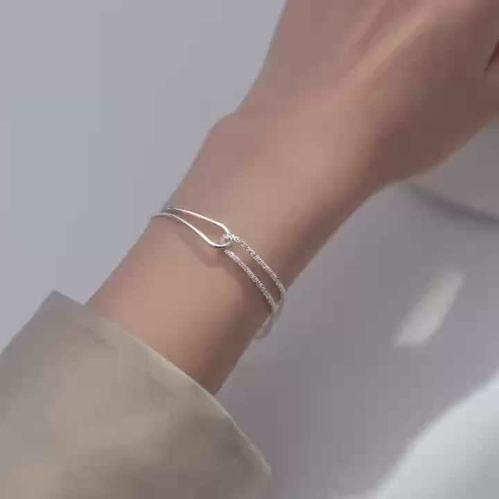 This minimalist and elegant bracelet features a twisted line design that adds a touch of sophistication to any outfit.