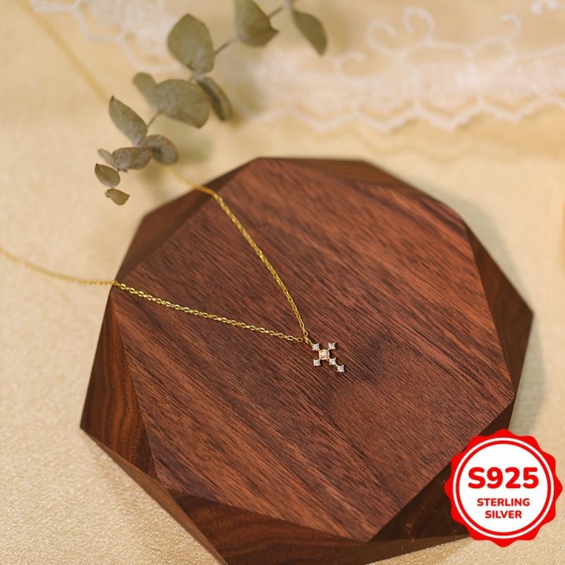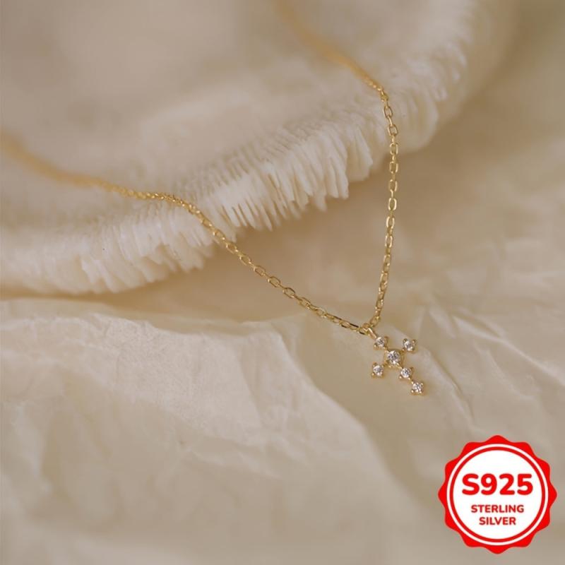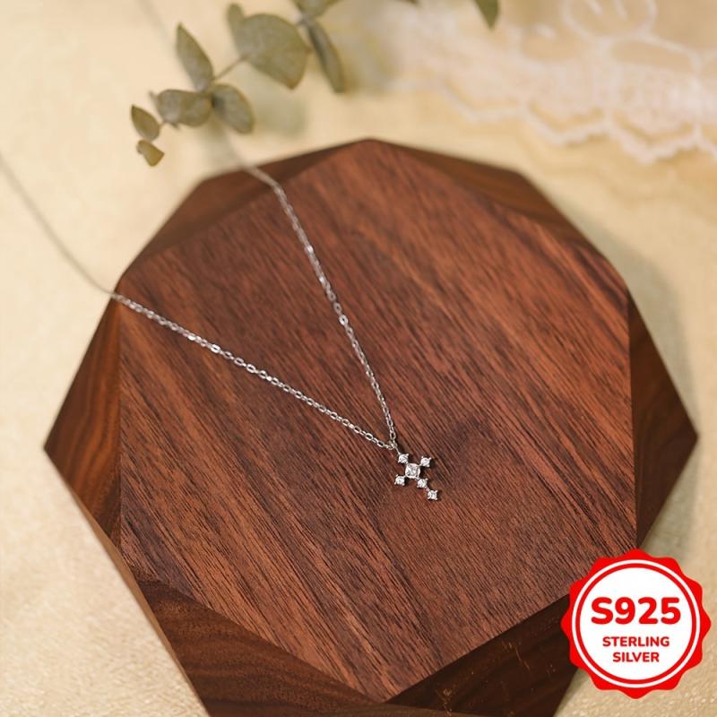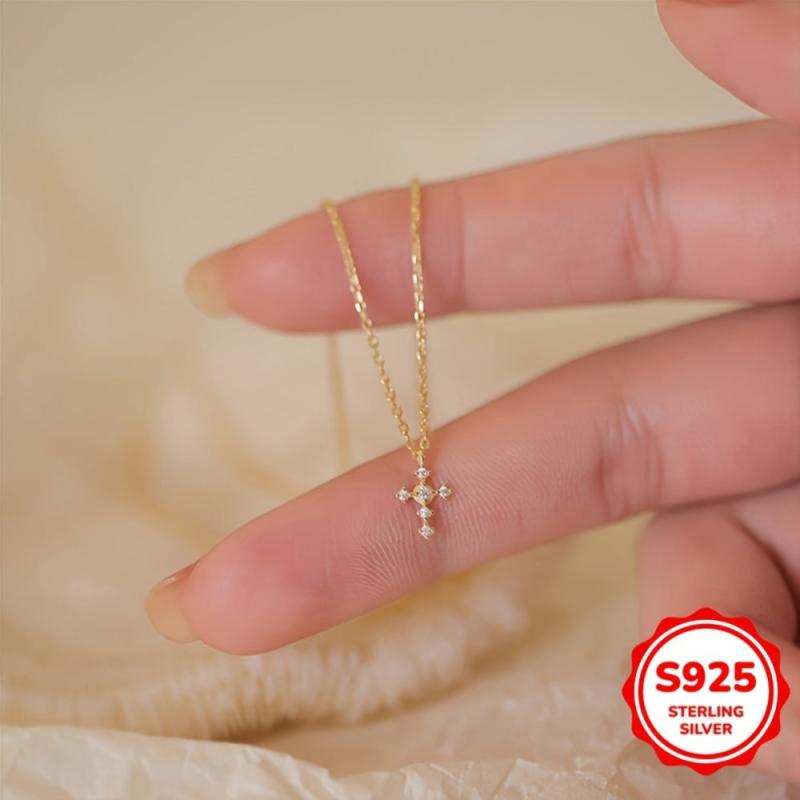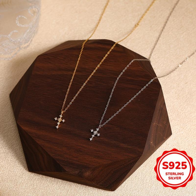 S925 Cross Pendant Necklace for Women - Holiday Party Gift