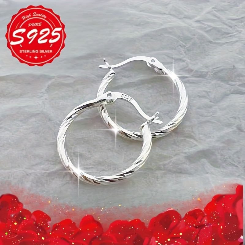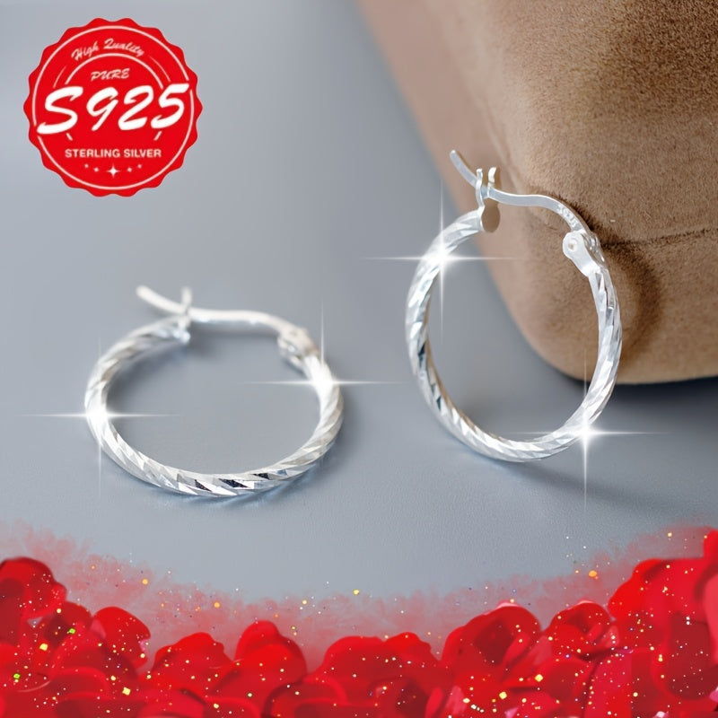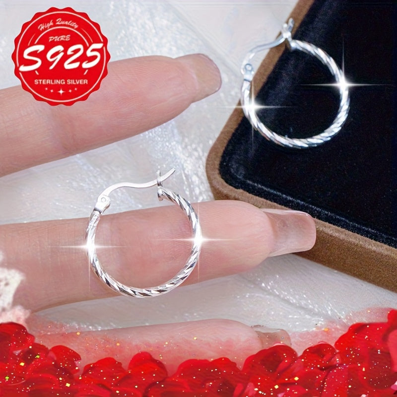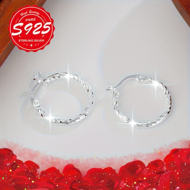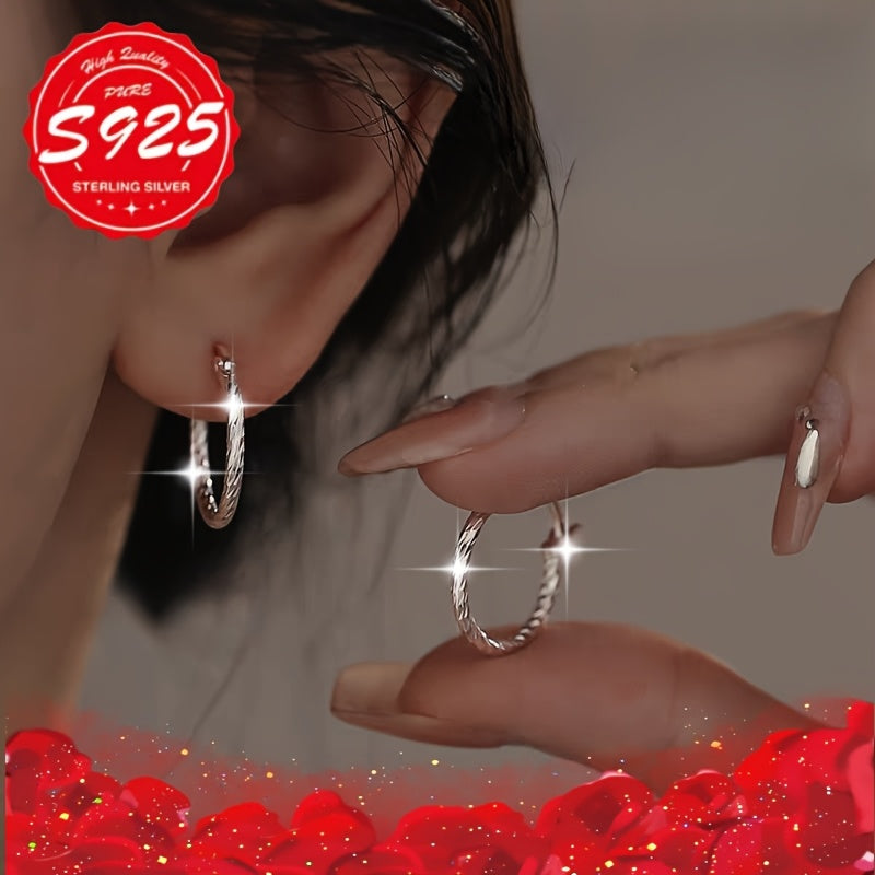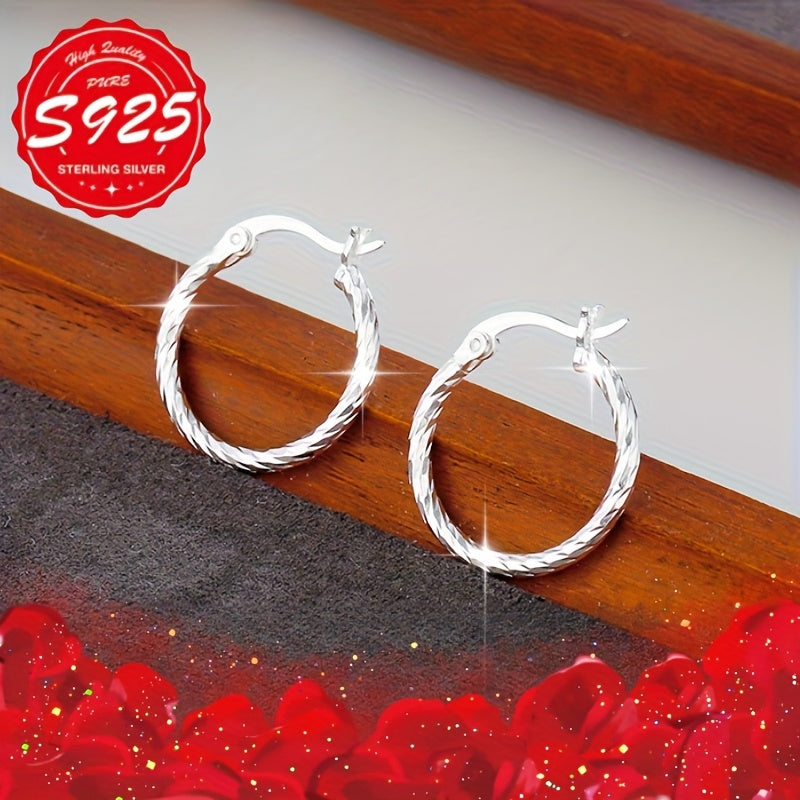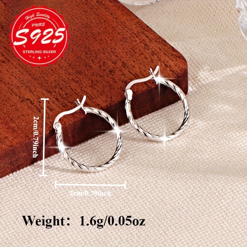 These stylish S925 pure silvery earrings weigh about 1.6g and feature a twisted round geometric design. They are suitable for daily wear and parties and make a great gift for mothers. These earrings can be worn in all seasons.