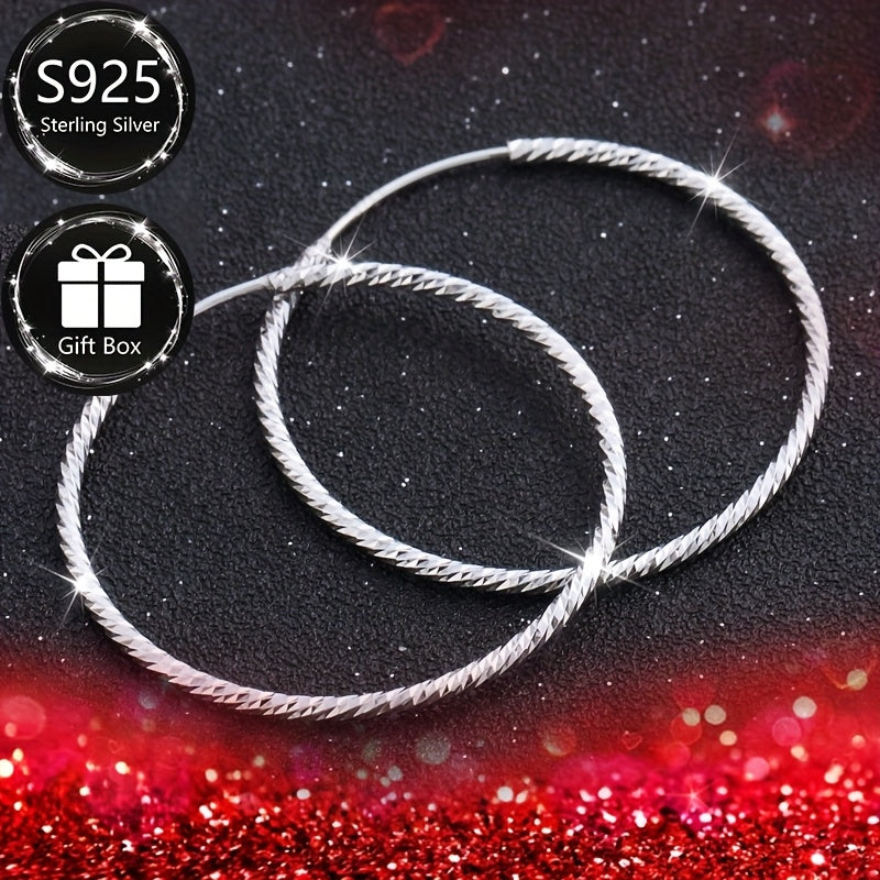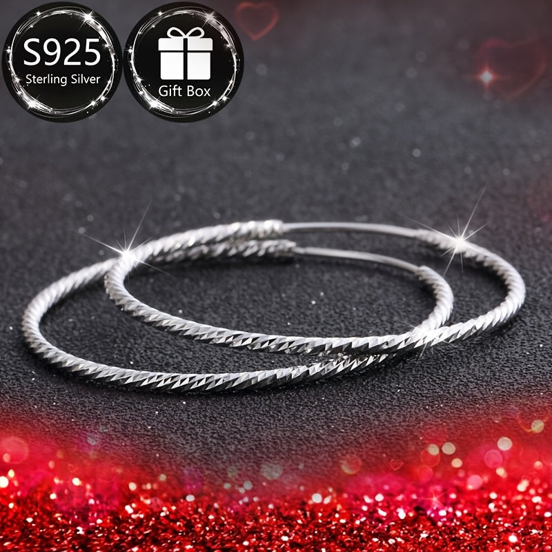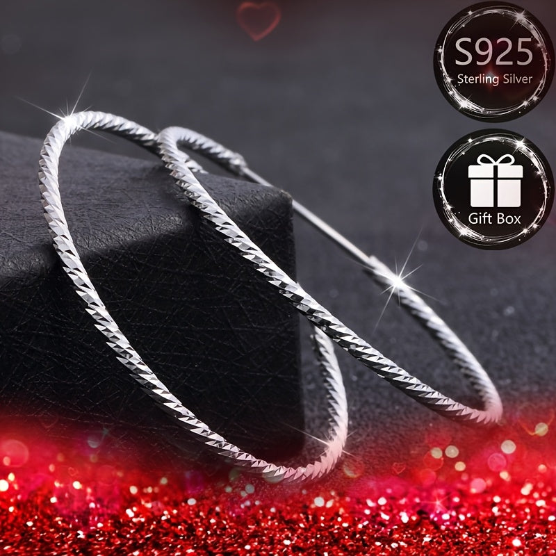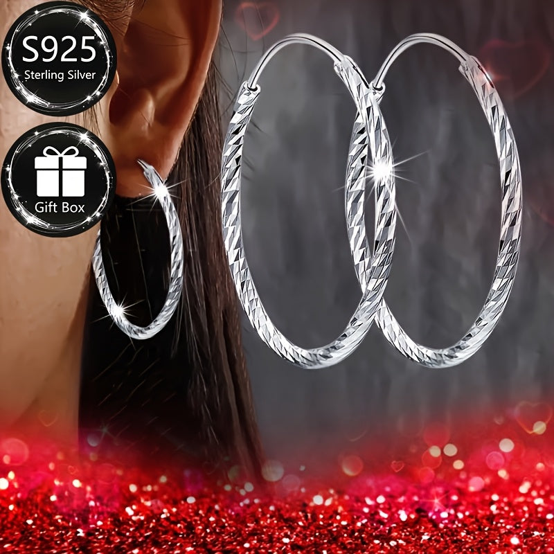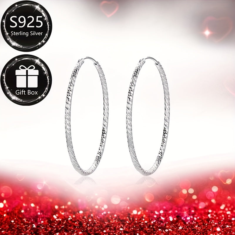 These stylish S925 sterling silver earrings feature a large circle design with intricate floral patterns, perfect for music theme parties or a hip hop look.