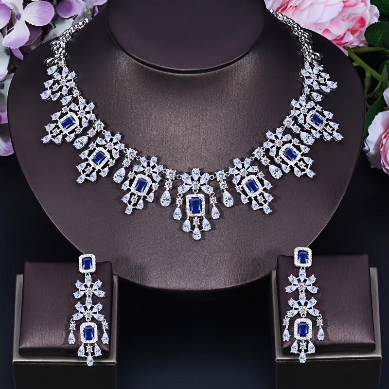 Silver Plated Bride Jewelry Set Necklace & Earrings