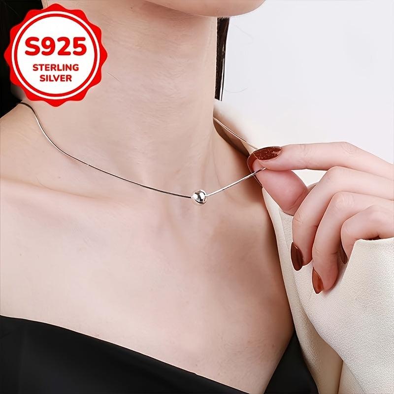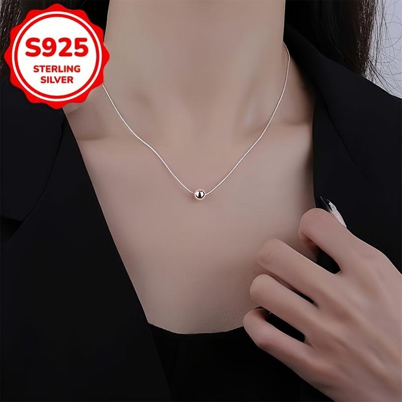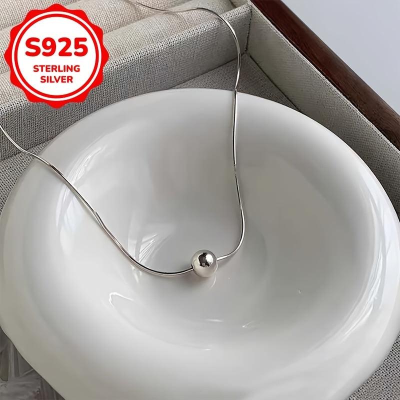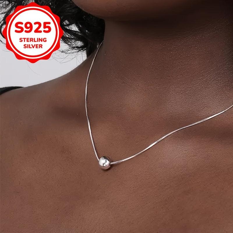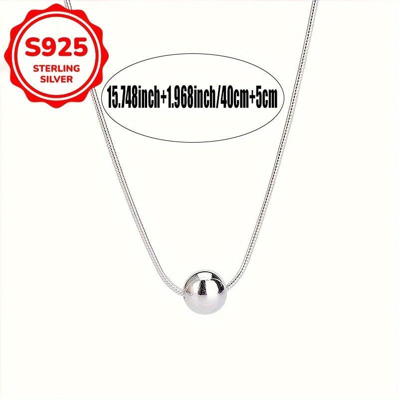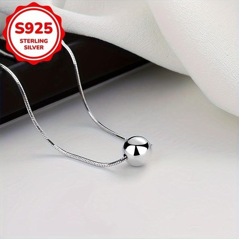 Elegant snake bone chain necklace with a small ball pendant made of high-quality S925 silver, perfect for women's anniversary, wife, mother, or holiday gift.