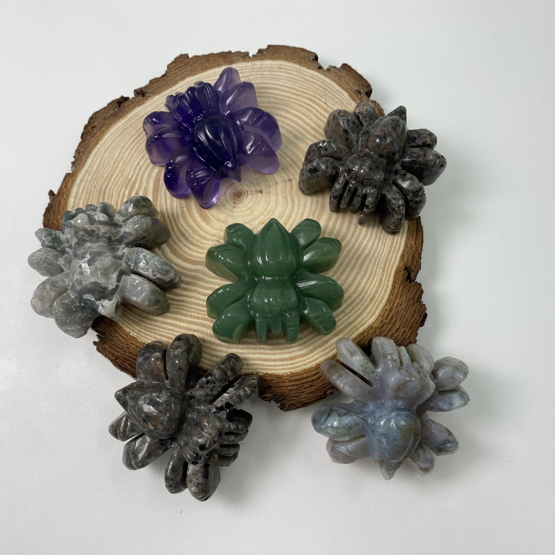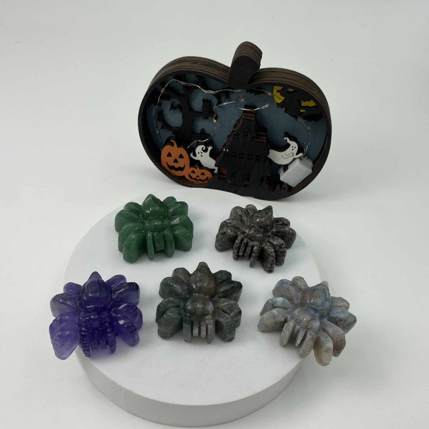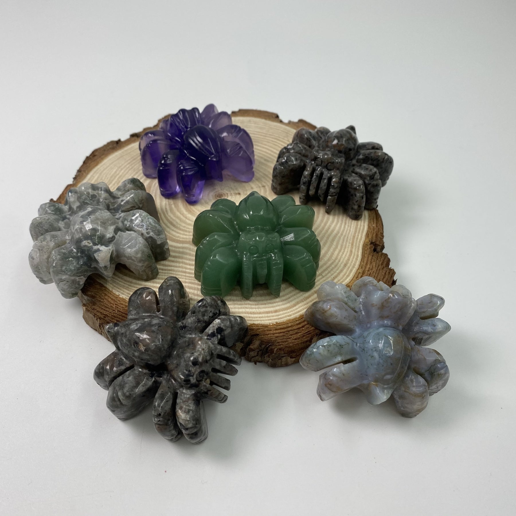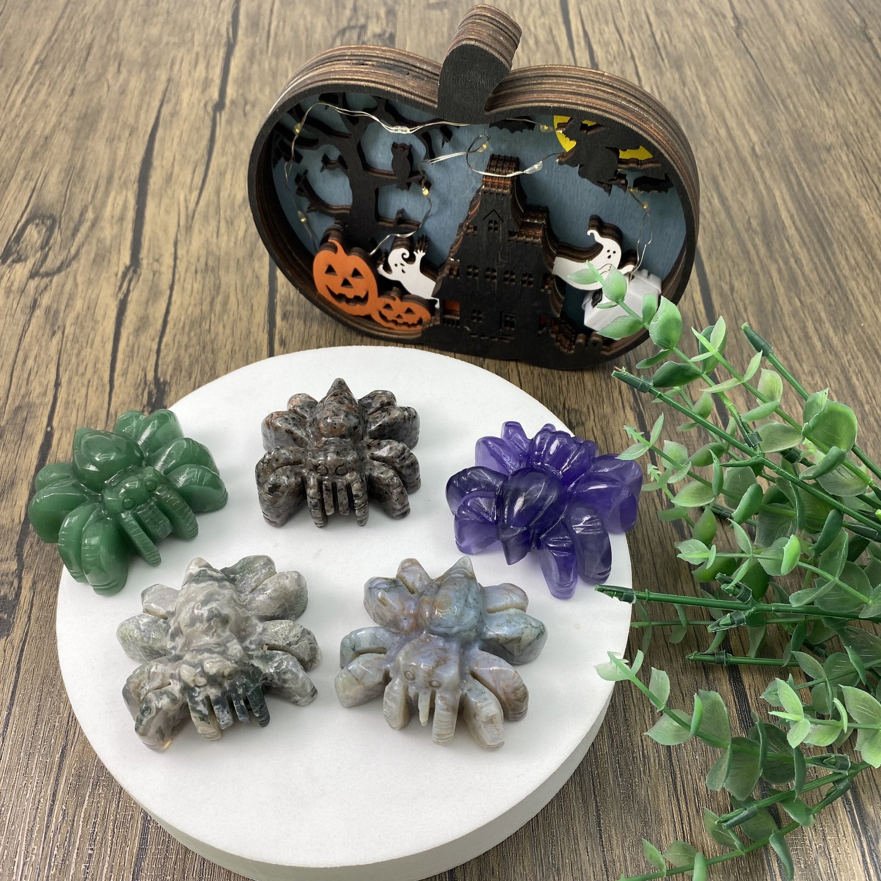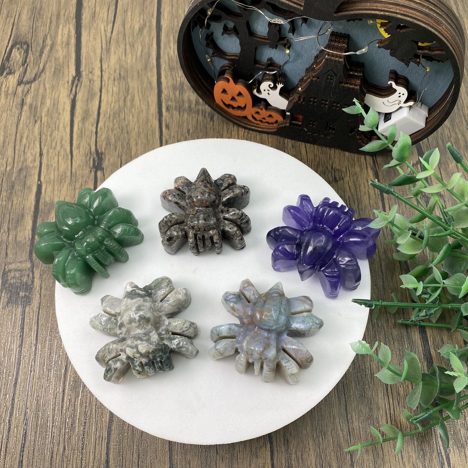 Add a spooky touch to your home with this natural stone spider carving. Perfect for Halloween or everyday energy healing.