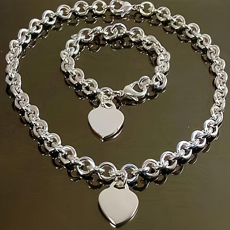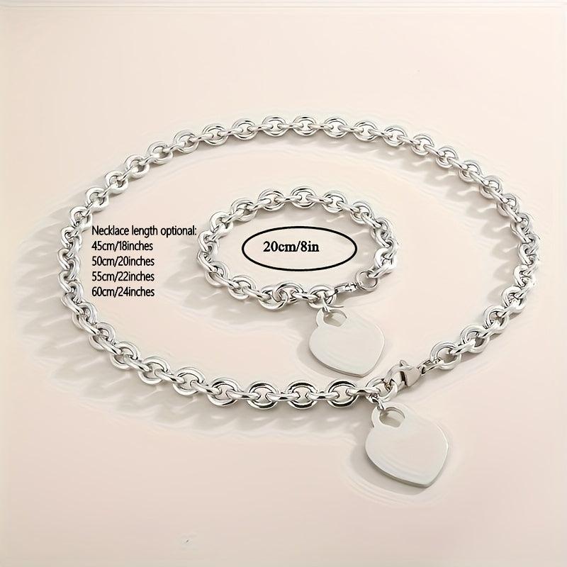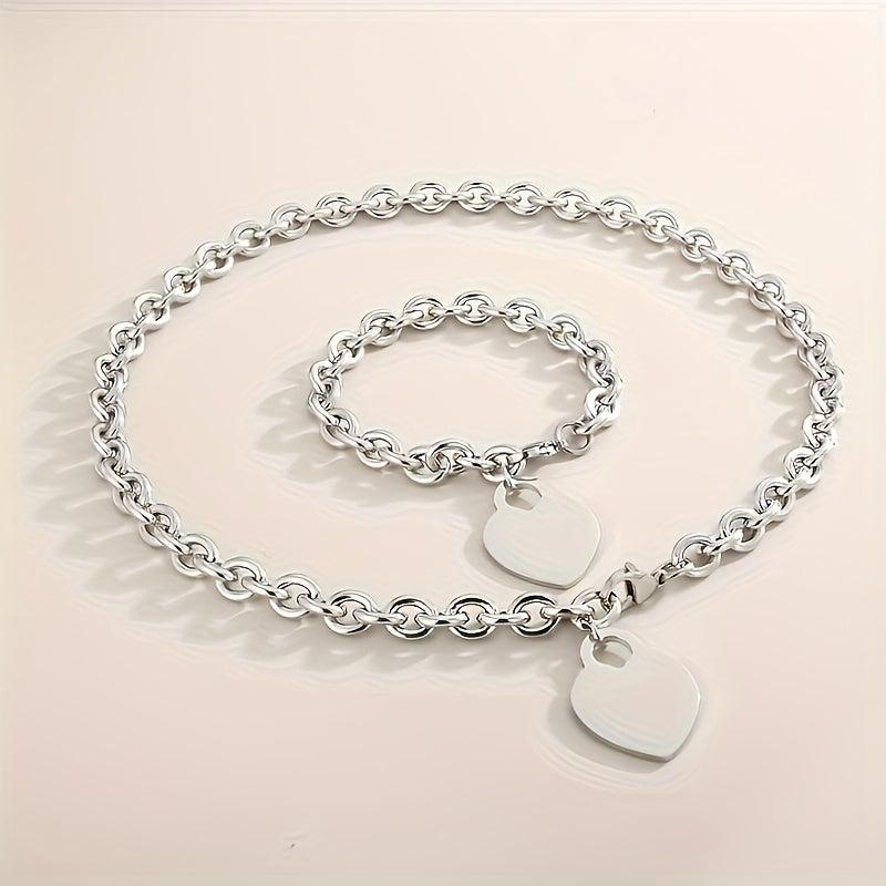 This hip hop style necklace and bracelet set is perfect for daily wear and parties. Made from stainless steel, it is durable and versatile. Ideal for gifting on Valentine's Day.
