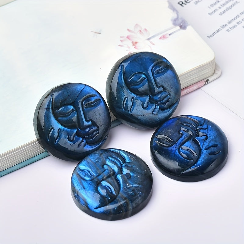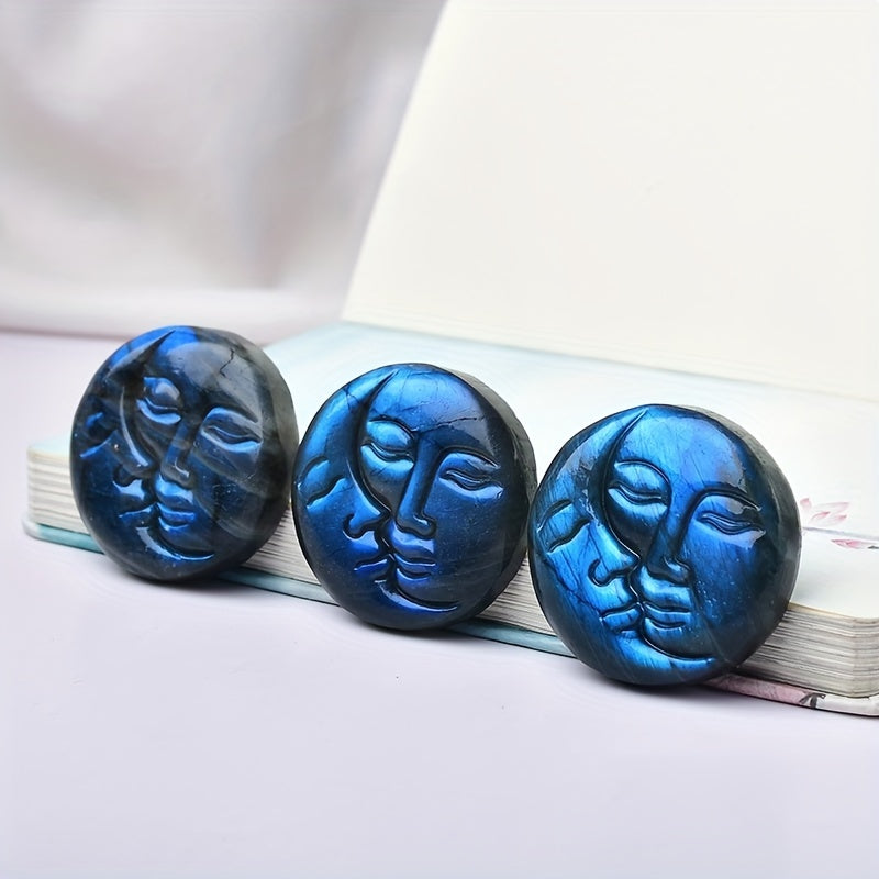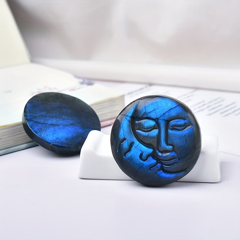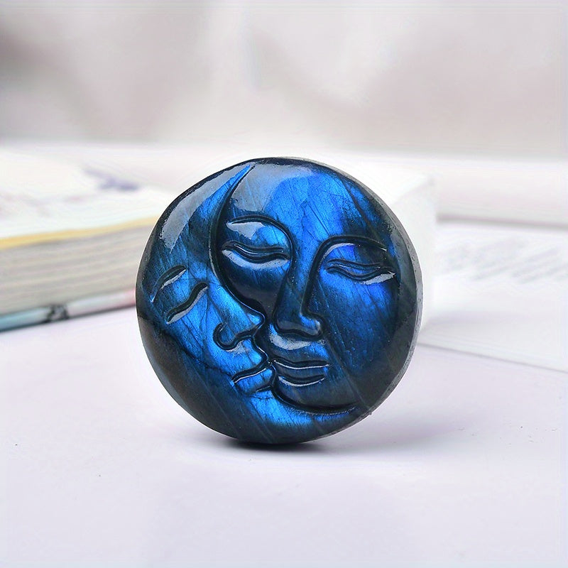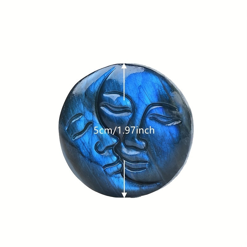 Adorn your space with this charming stone ornament featuring a sun and moon face design. Perfect for home, desktop, or car decoration.