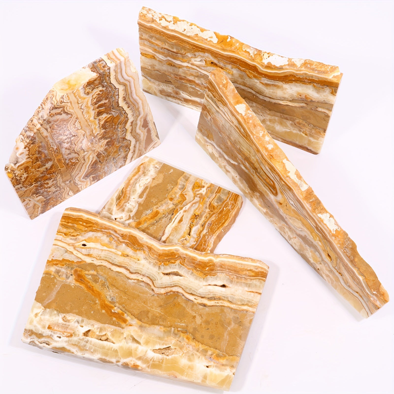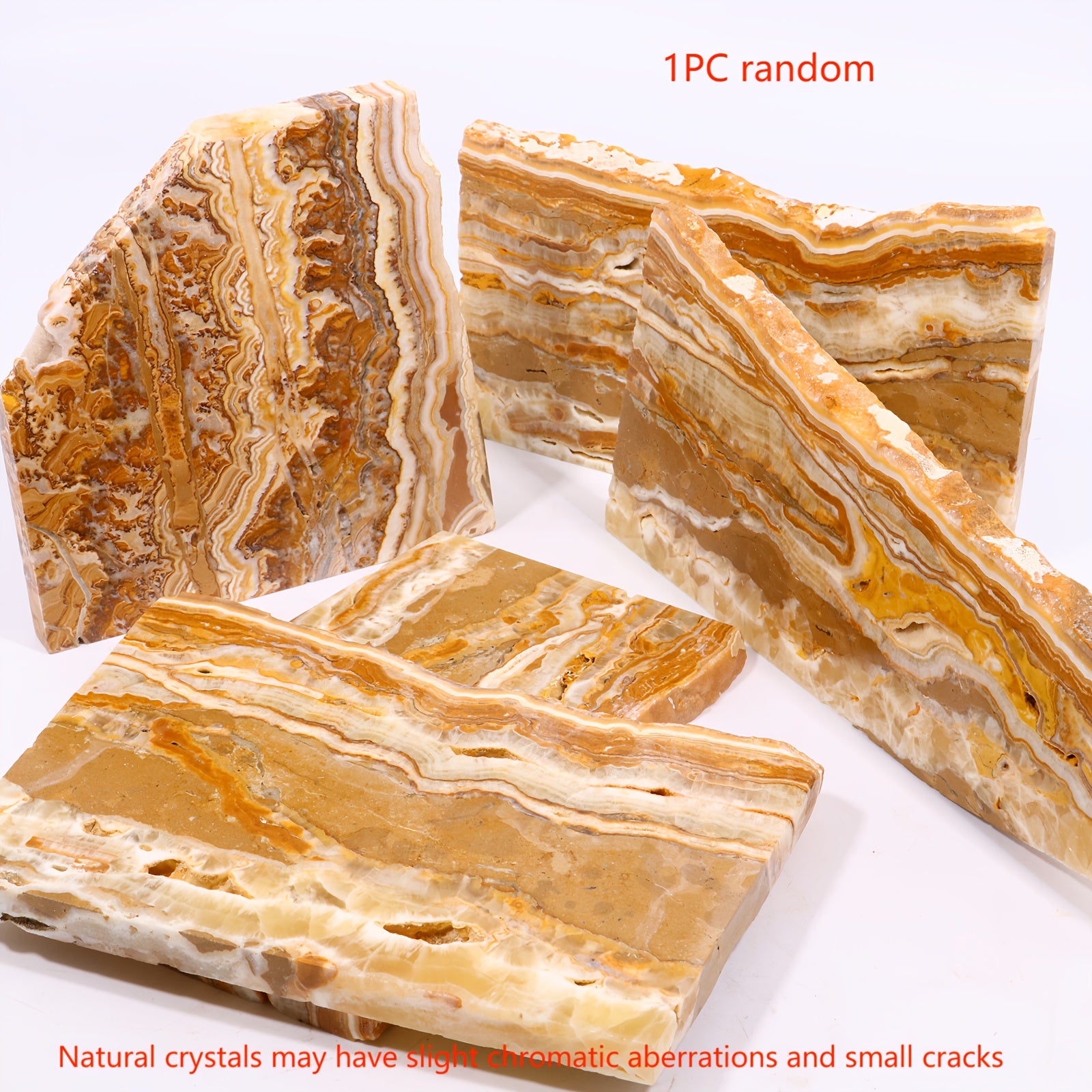 Enhance your space with these natural colored striped jade flakes yellow jade ornaments, perfect for garden art or home decoration.