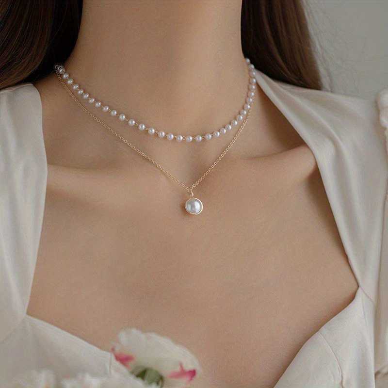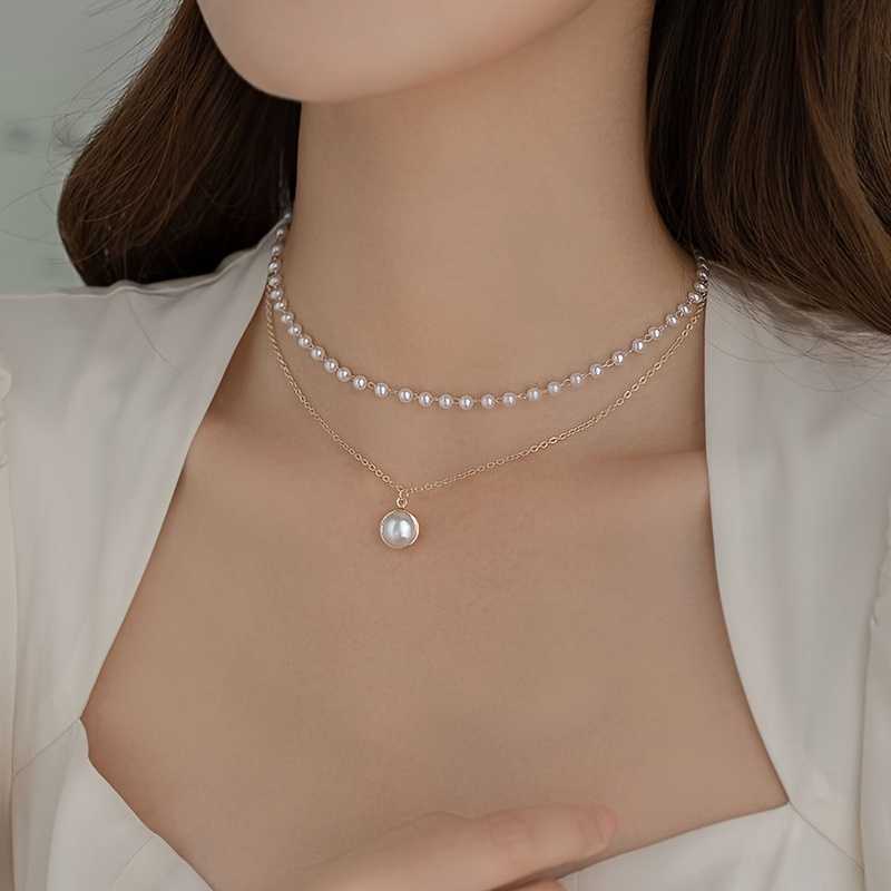 Stylish Double Layer Baroque Faux Pearl Necklace for Women.