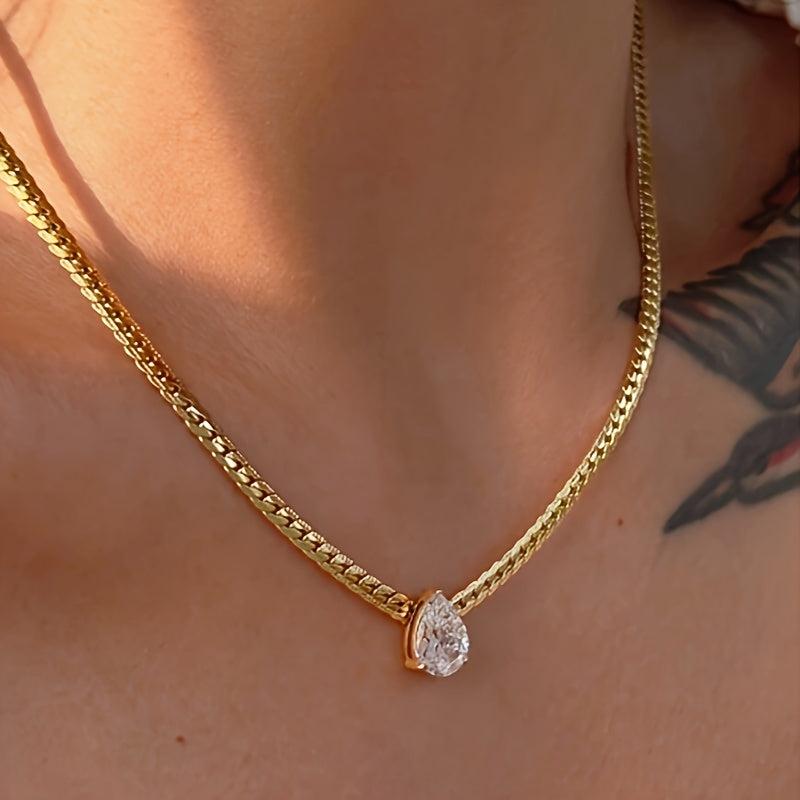 Add a touch of elegance with this teardrop-shaped synthetic sapphire necklace. Crafted with stainless steel snake bone chain and 18K golden plated Cuban chain, this piece is perfect for mothers and special occasions.