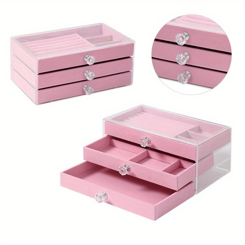 Keep your earrings, bracelets, and jewelry organized with this three-layer transparent drawer storage box.