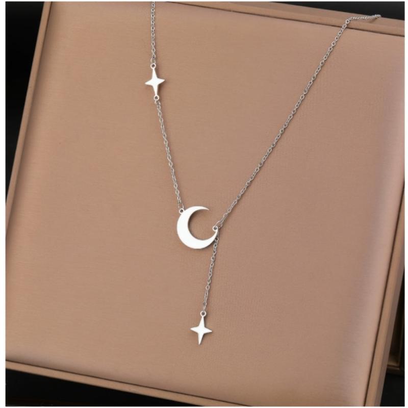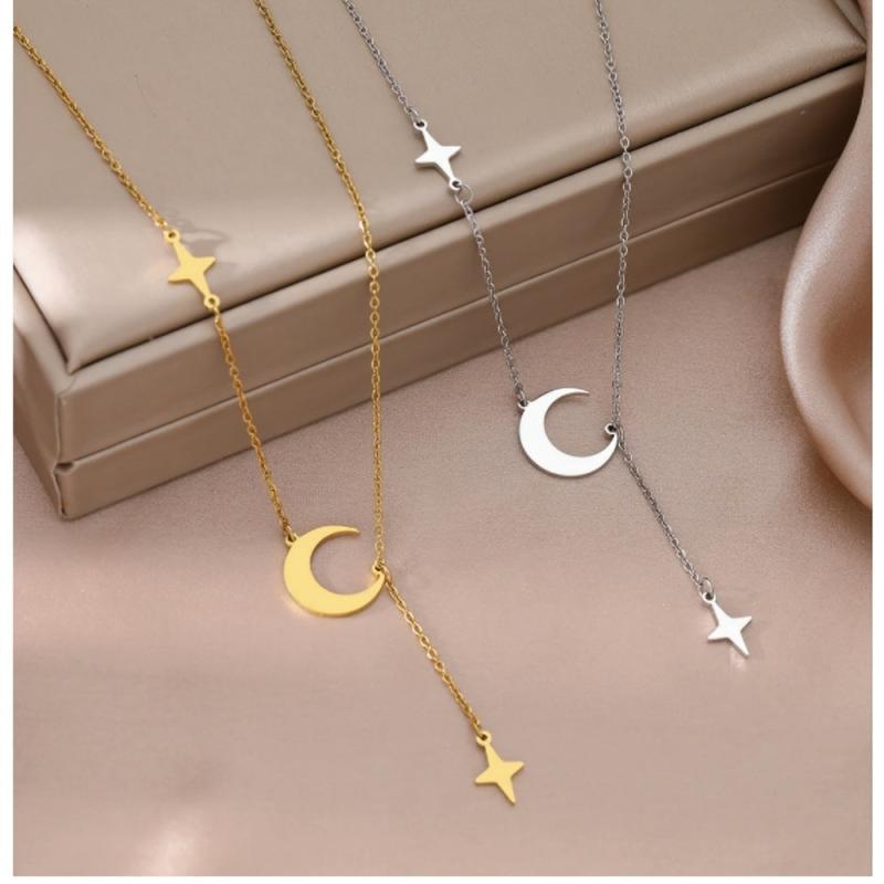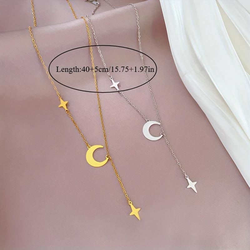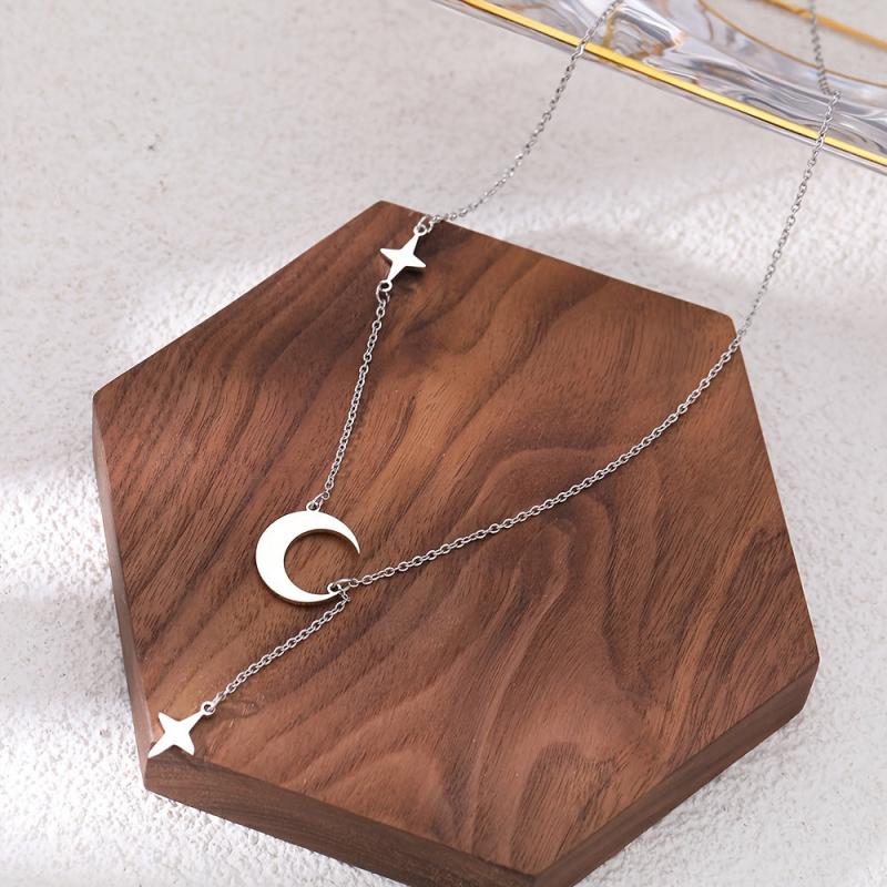 This classic necklace features a two-star and moon pendant crafted from titanium steel, making it durable and suitable for daily wear or couple outings. Its minimalist design adds a touch of elegance, perfect for all seasons.