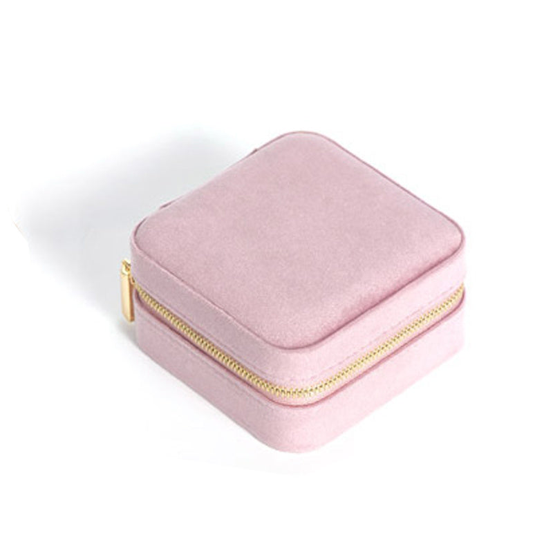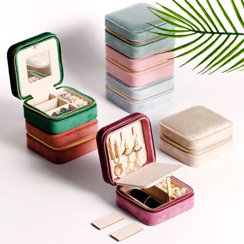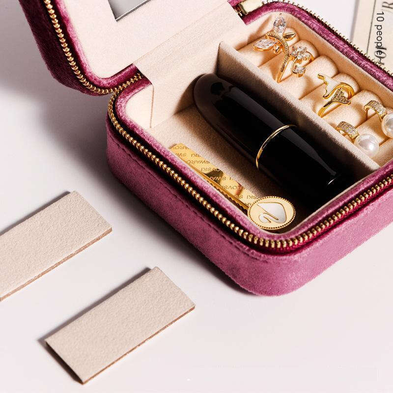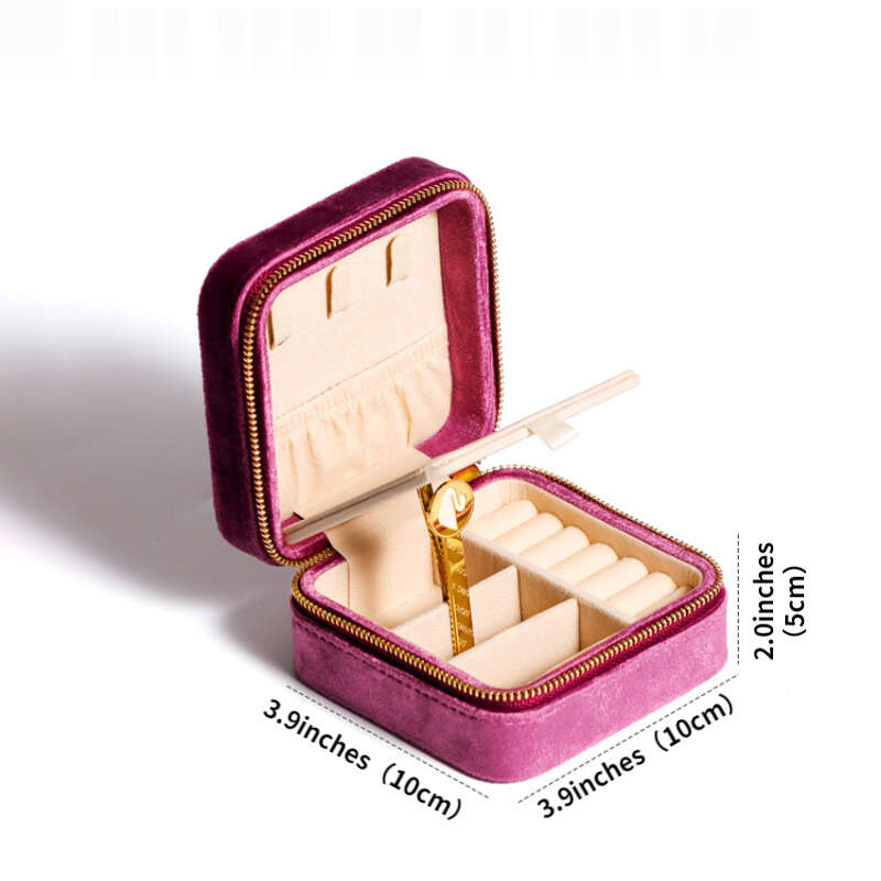 Keep your jewelry safe and organized while traveling with this elegant velvet rectangular jewelry box. The compact design makes it easy to pack in your luggage.