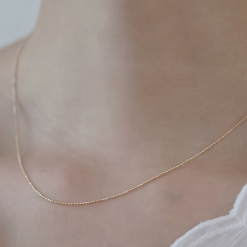 Elegant and versatile necklace crafted from S925 silver with ultra thin golden beads. Features a geometric design for a chic look.