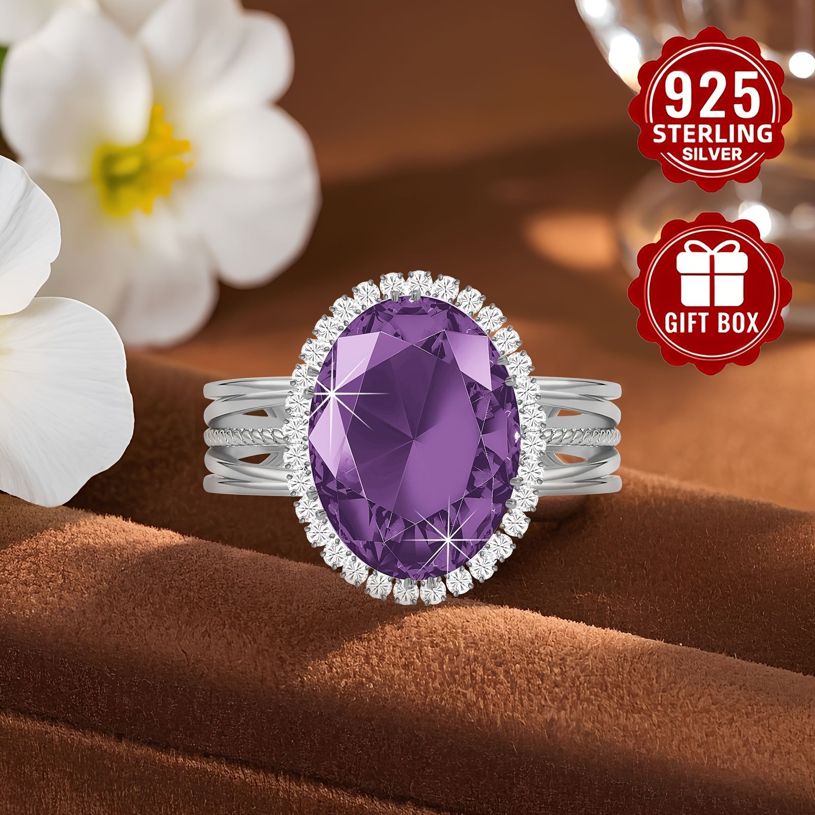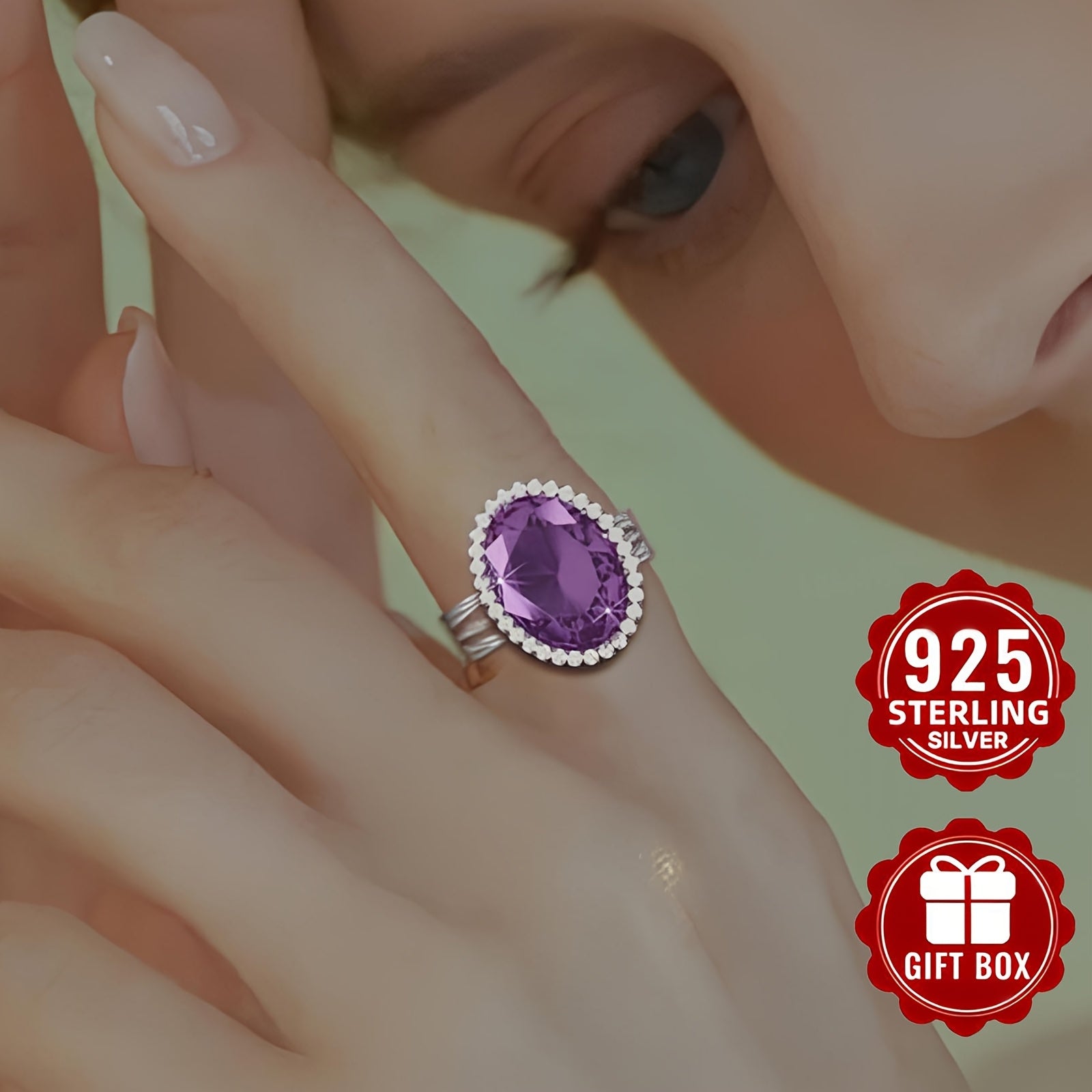 Elevate your style with this stunning synthetic zirconia ring featuring a large layered design in purple. Crafted with high-quality S925 silver, perfect for casual attire or special occasions like parties and anniversaries.