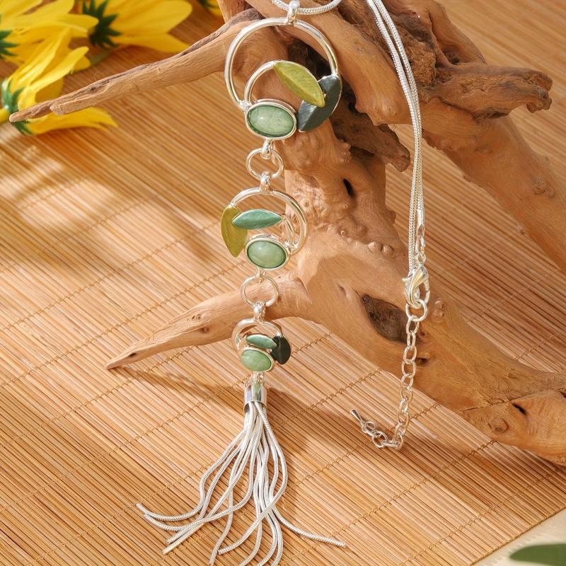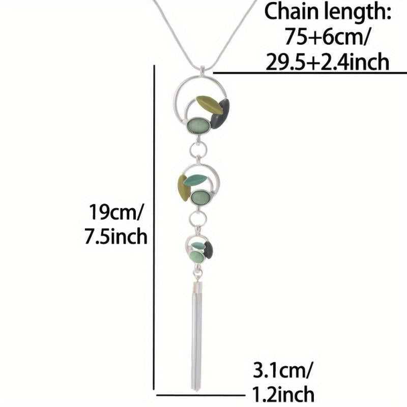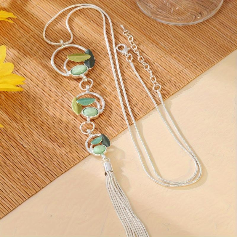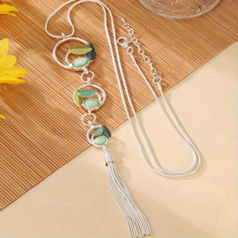 Y Leaf Inlay Tassel Necklace Boho Resin Enamel Craft Women's Jewelry