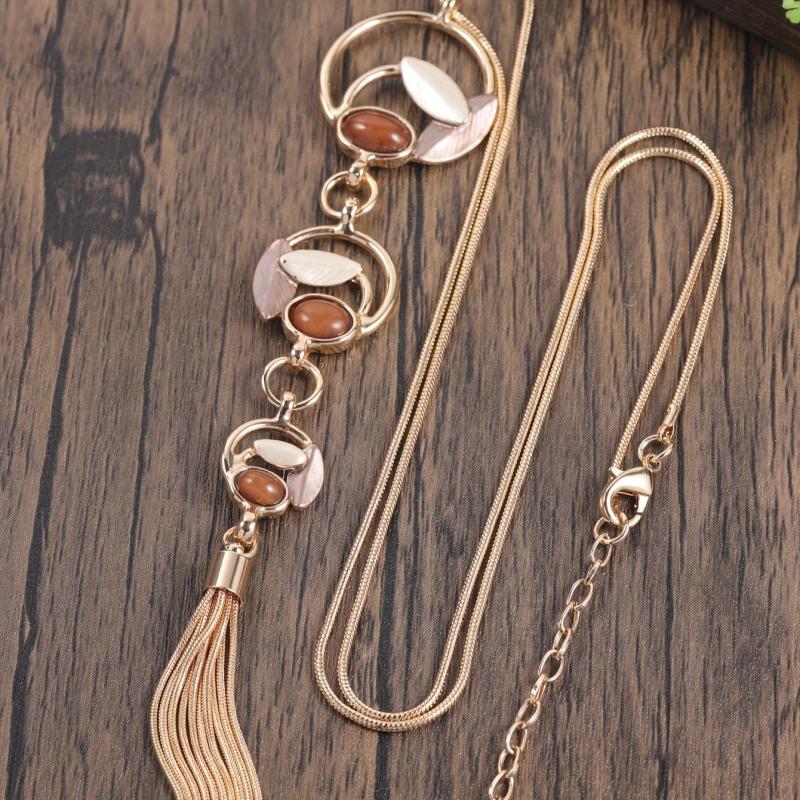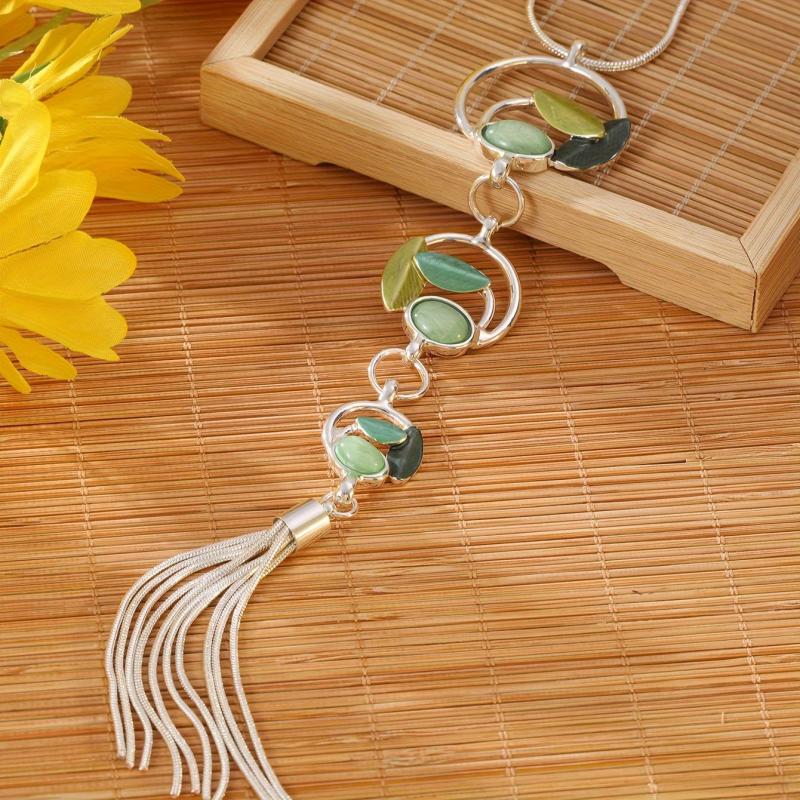Y Leaf Inlay Tassel Necklace Boho Resin Enamel Craft Women&