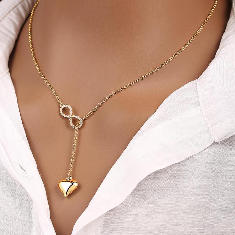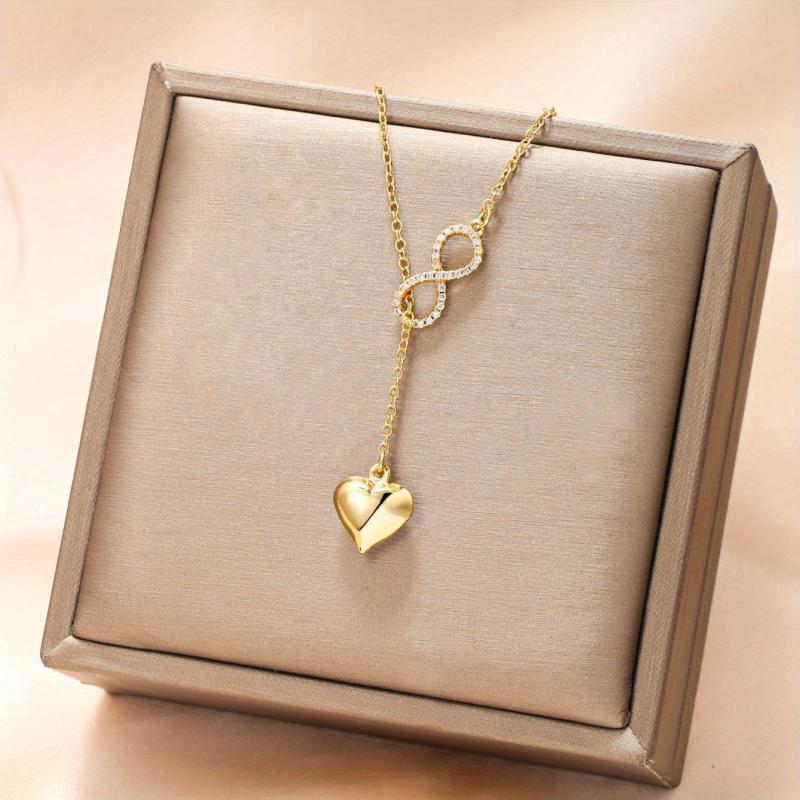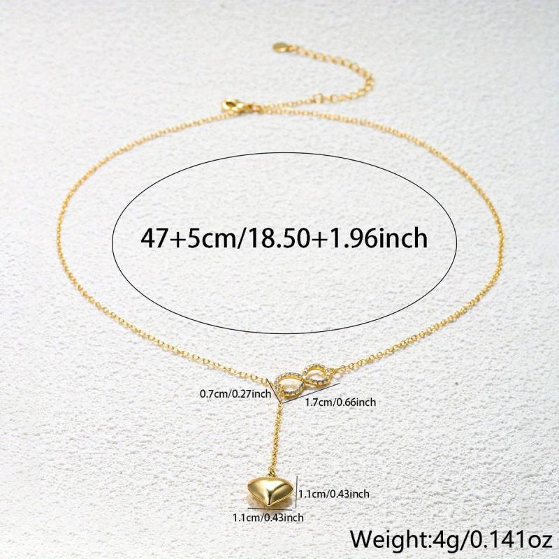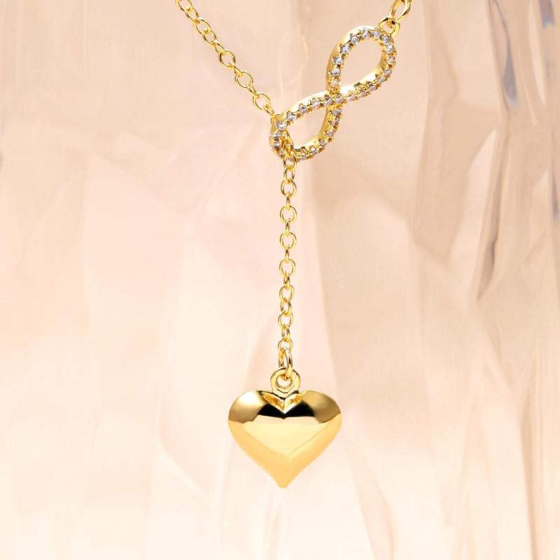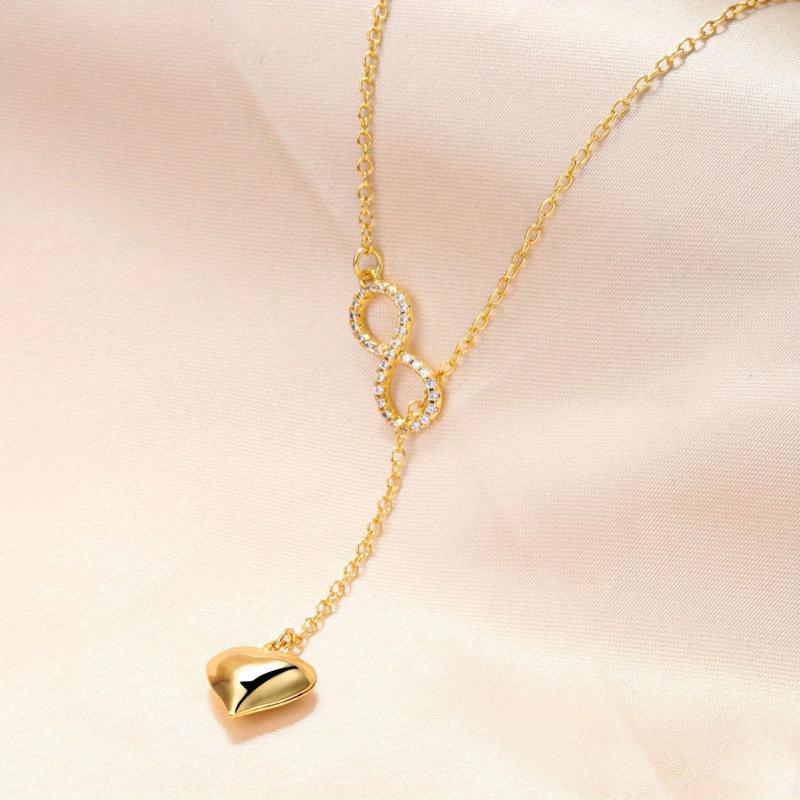 Y Shape Infinity Necklace with Heart Pendant & Zirconia Stones
