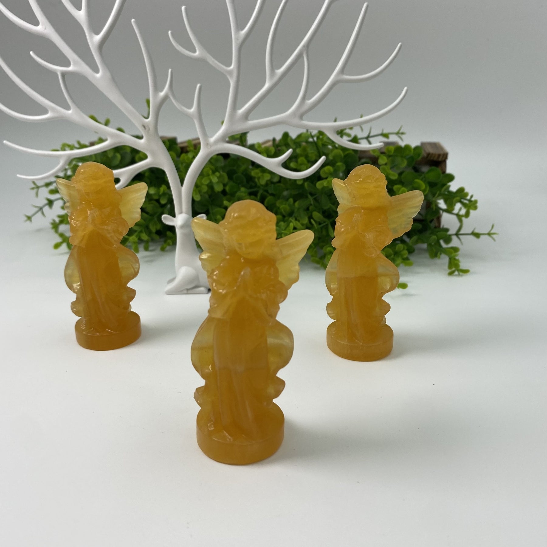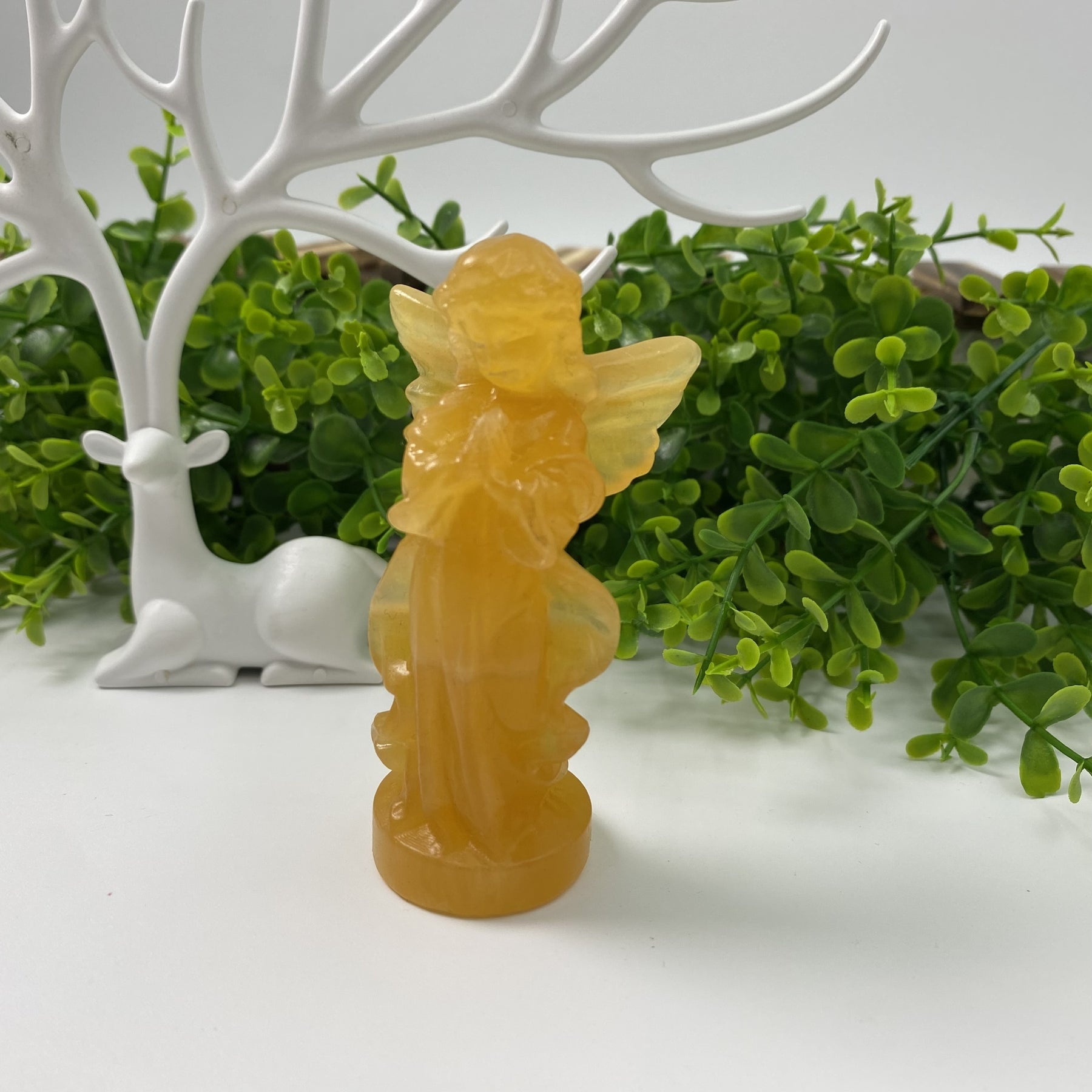• Hand-carved angel made from natural Yellow Calcite crystal stone
