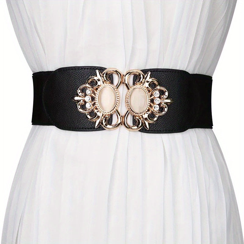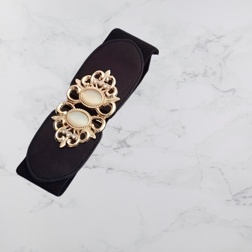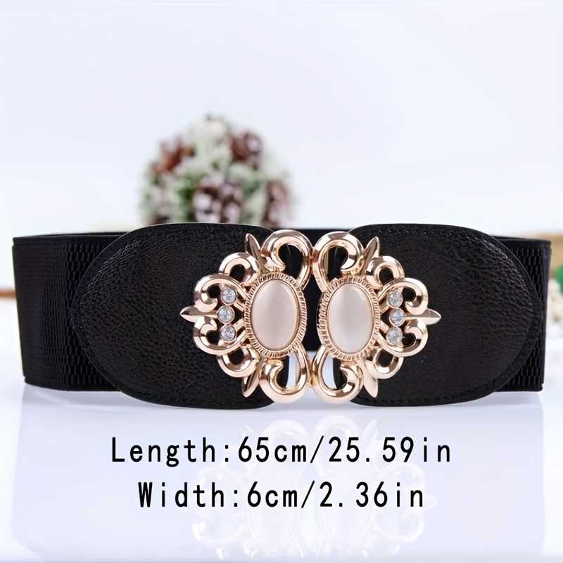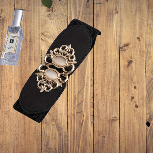 Women's Elastic Waspie Belt Adjustable Wide Waistband with Gold Double Buckle